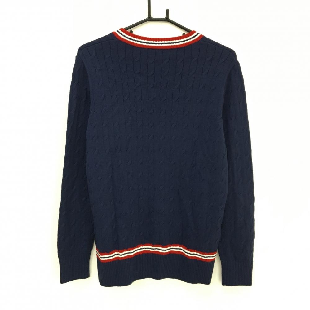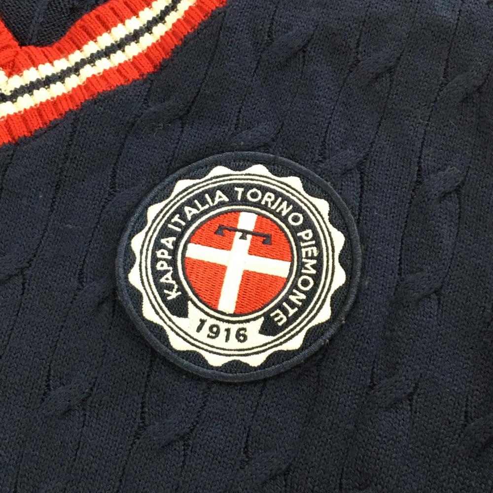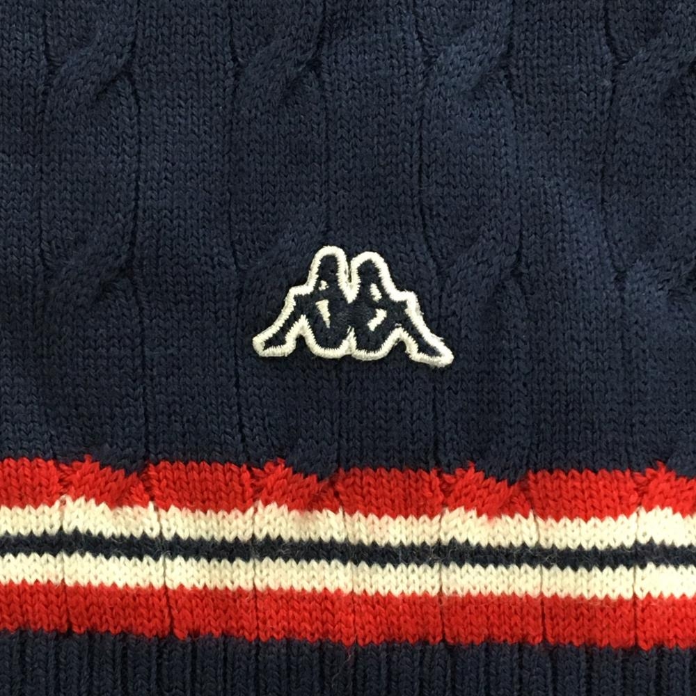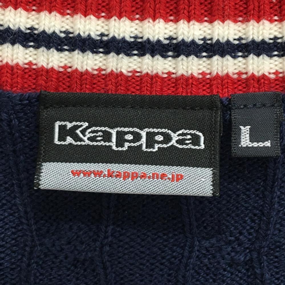 【超美品】カッパ セーター ネイビー×レッド ケーブル編み ニット ウール混 Vネック メンズ L ゴルフウェア Kappa