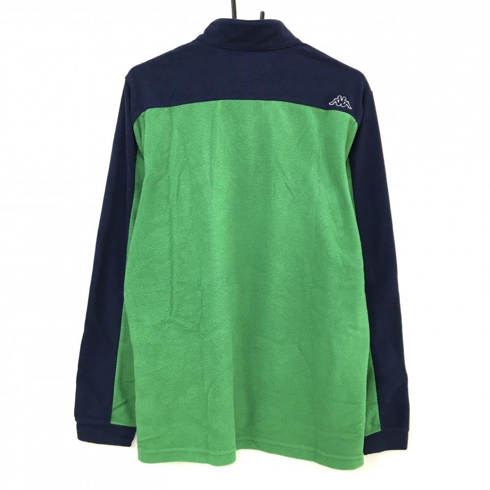 カッパ 長袖ハイネックシャツ グリーン×ネイビー フリース ハーフジップ メンズ O(XL) ゴルフウェア Kappa