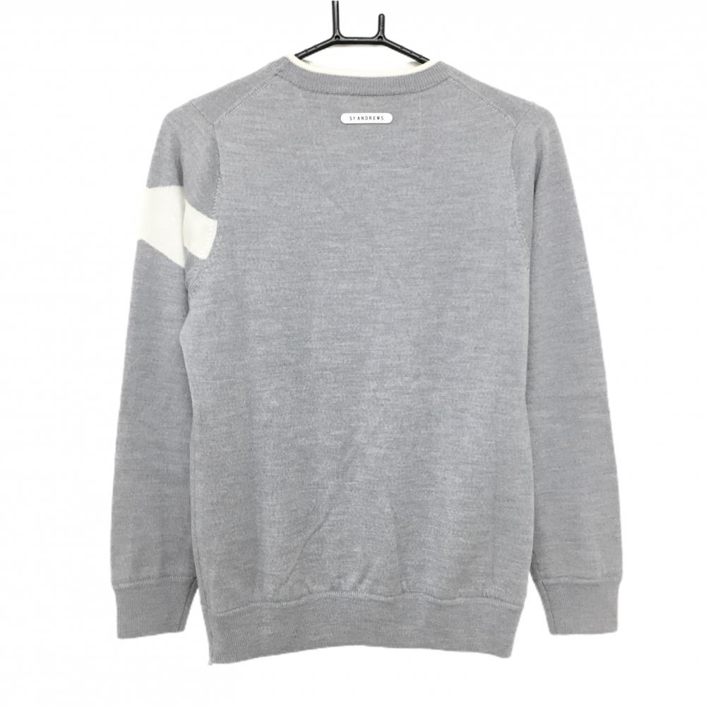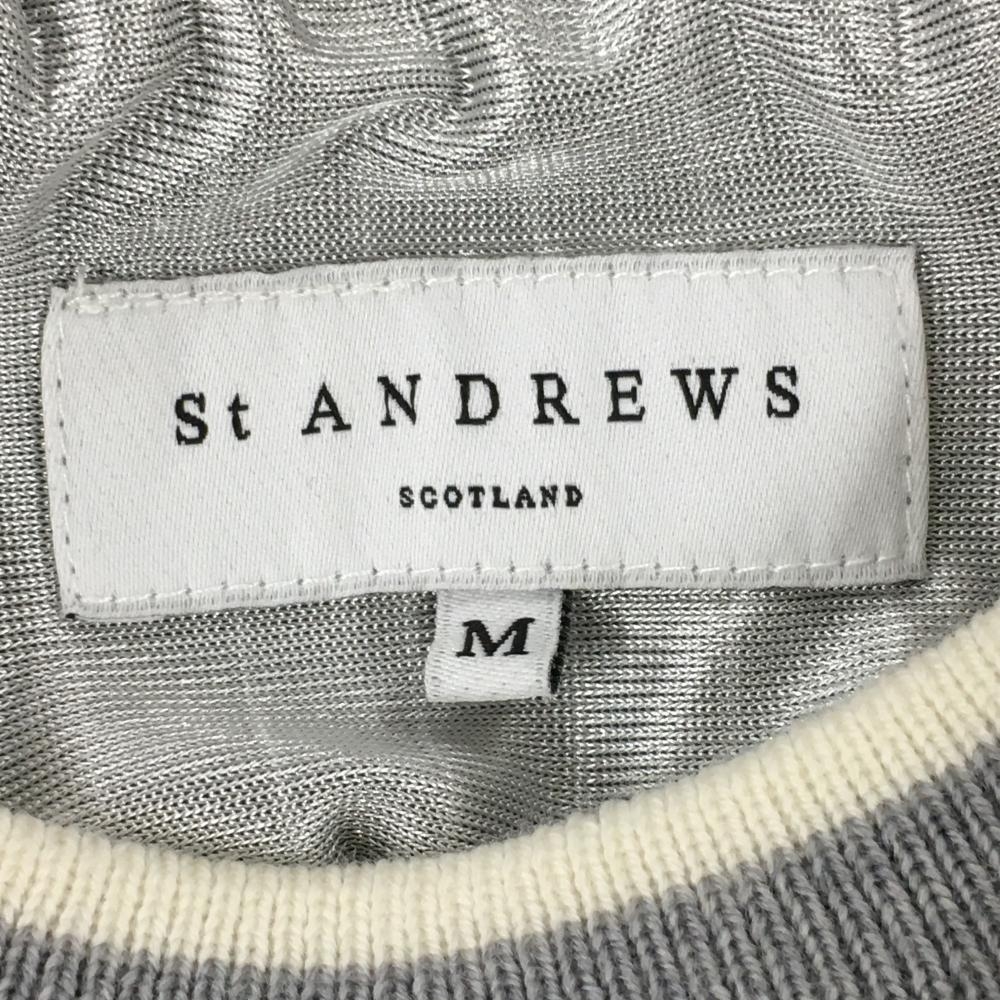 【美品】セントアンドリュース セーター グレー×白 蓄熱裏地 ウール100% ニット レディース M ゴルフウェア St ANDREWS