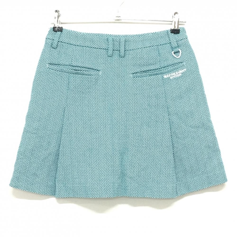 【美品】マスターバニー スカート グリーン×白 ヘリンボーン 内側インナーパンツ レディース 0(S) ゴルフウェア MASTER BUNNY EDITION