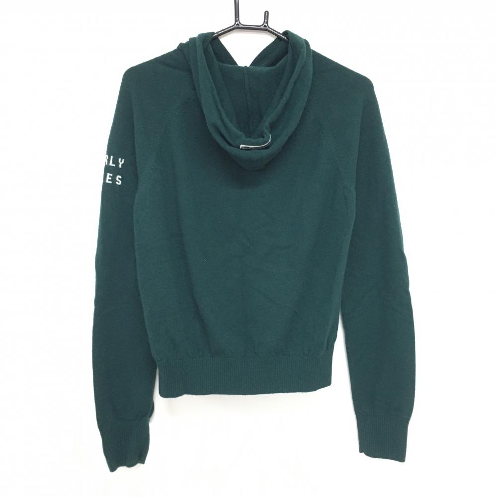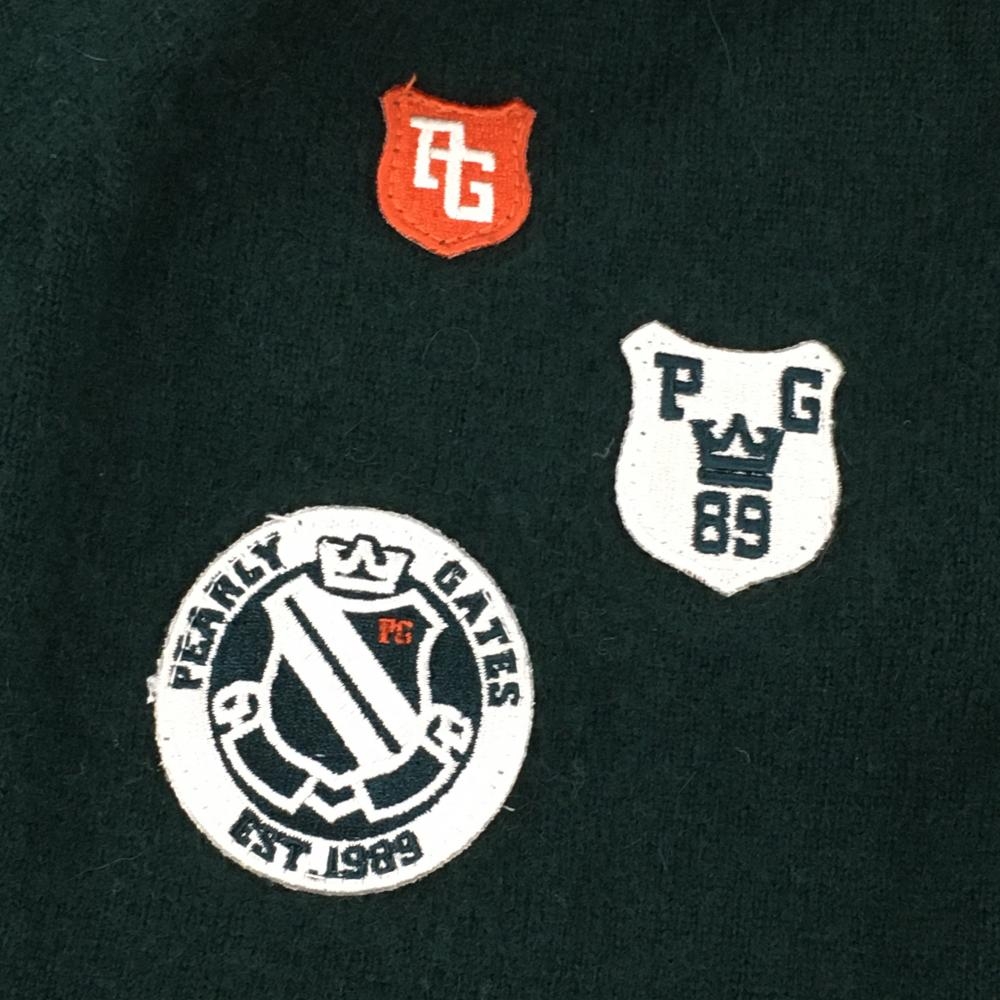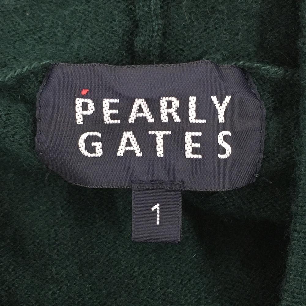 【美品】パーリーゲイツ フード付セーター グリーン 複数ワッペン カシミヤ混 ニット レディース 1(M) ゴルフウェア PEARLY GATES