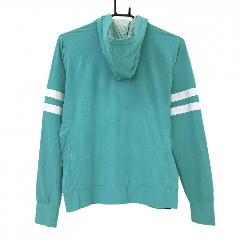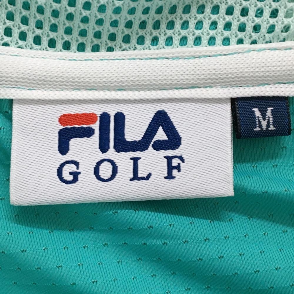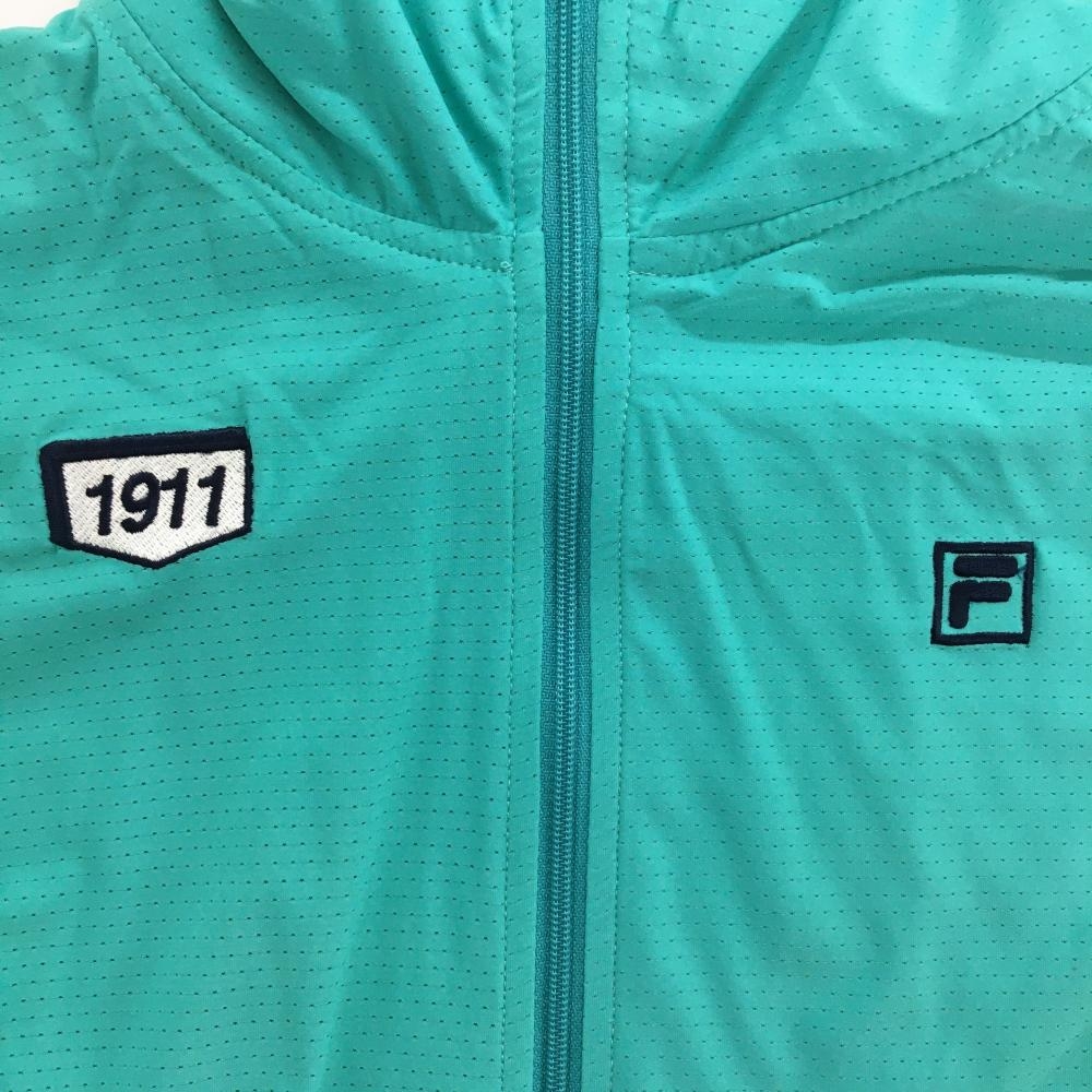 【超美品】フィラゴルフ ジップパーカー ブルーグリーン×白 袖ライン メッシュ調 ロゴ刺しゅう レディース M ゴルフウェア FILA GOLF