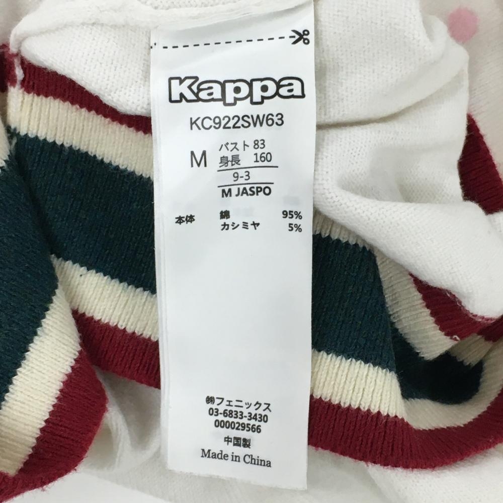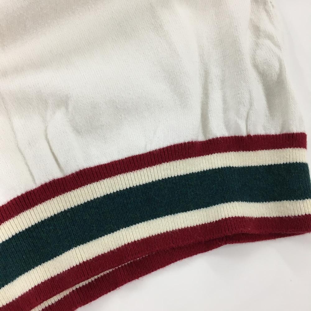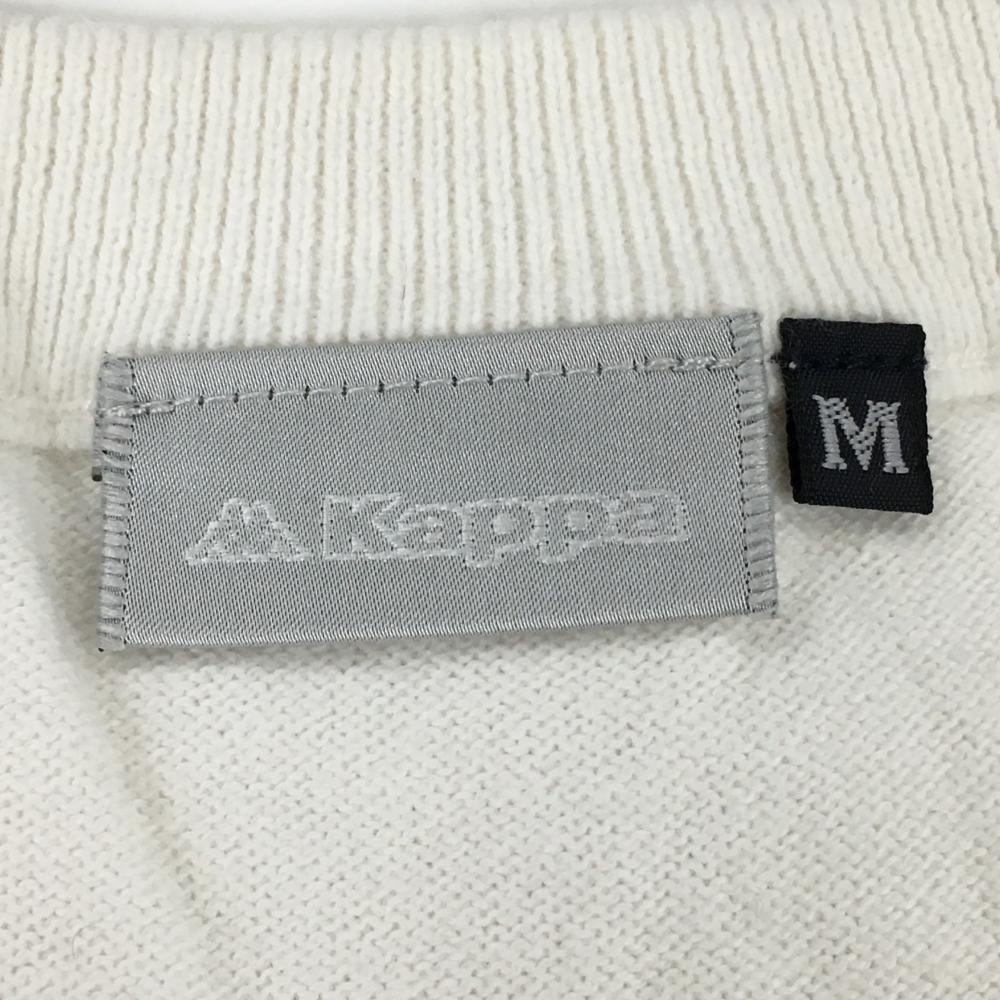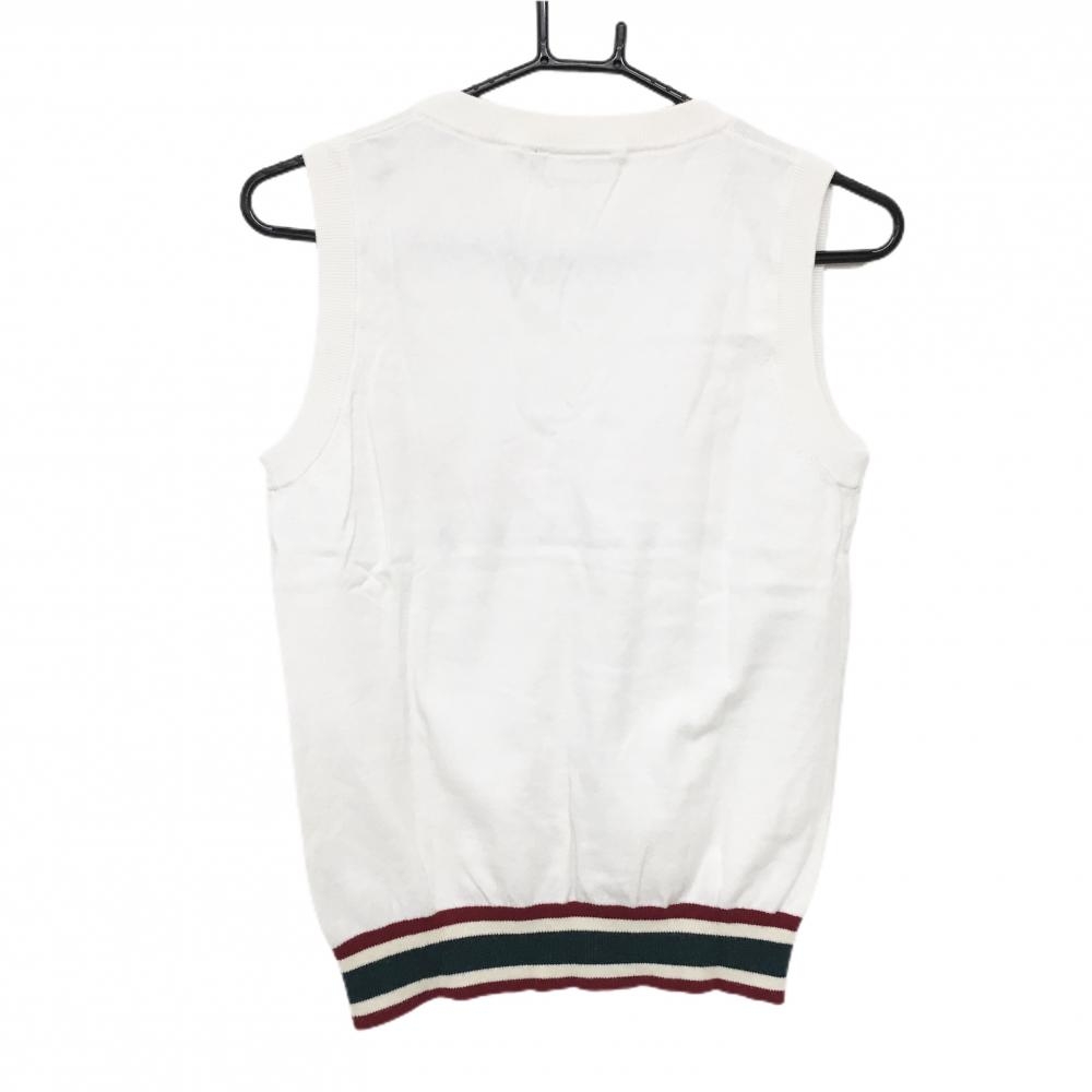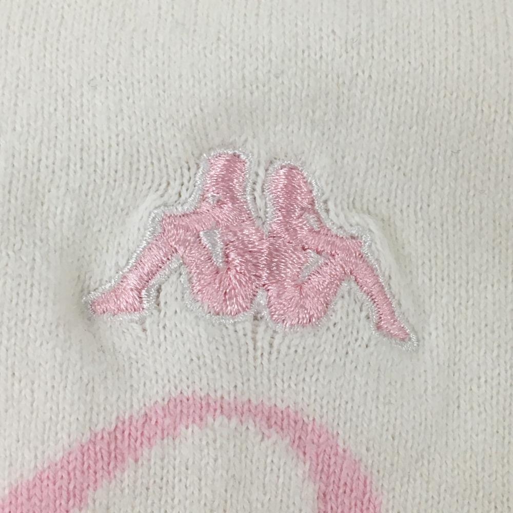 【美品】カッパ ニットベスト 白 ロゴ刺しゅう 裾ライン Vネック レディース M ゴルフウェア Kappa