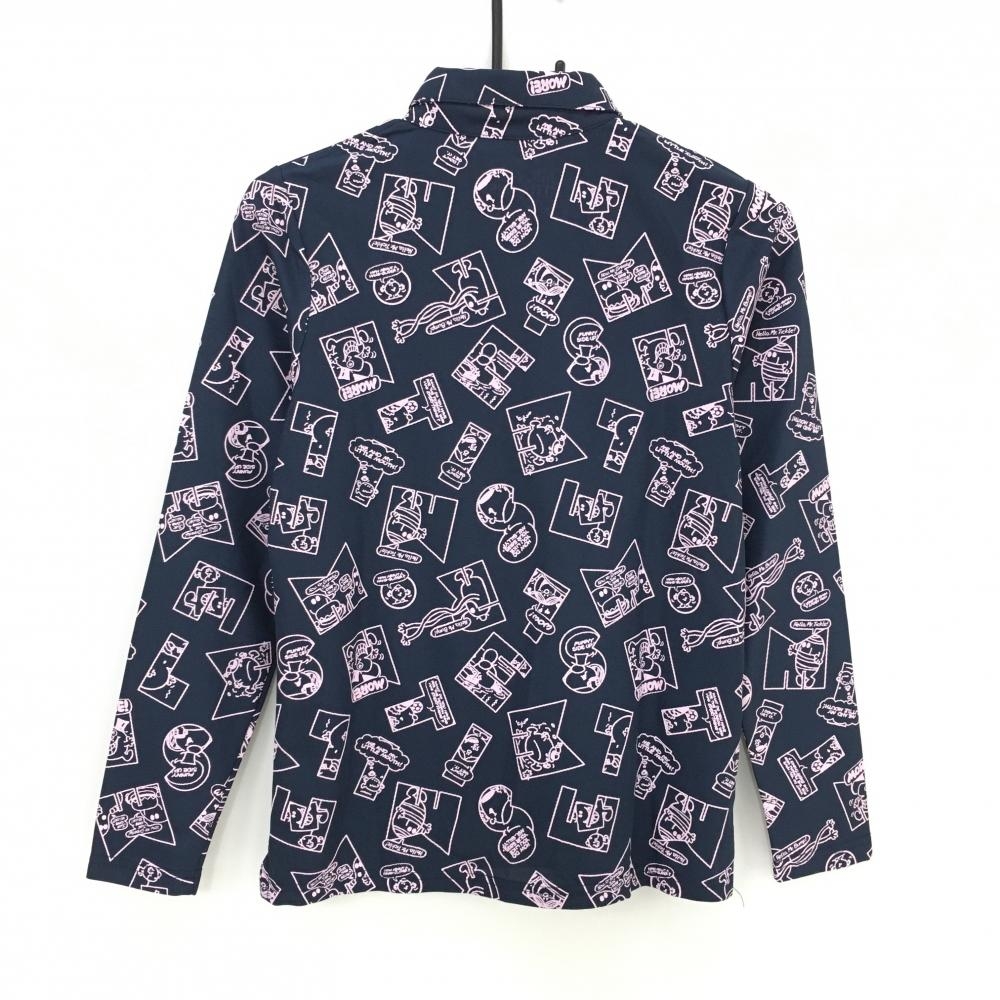 【超美品】ミスターメンリトルミス 長袖ポロシャツ ネイビー×ライトピンク 総柄 レディース M ゴルフウェア Mr.Men Little Miss