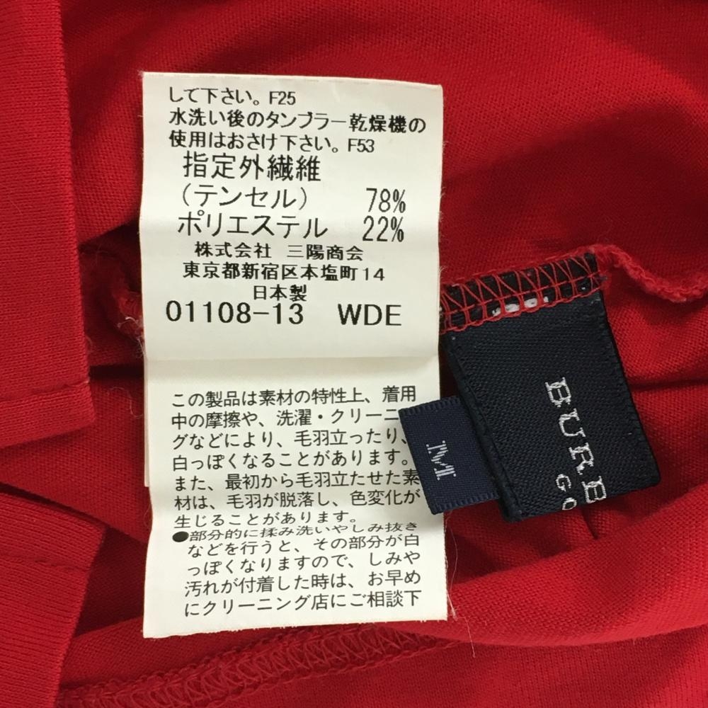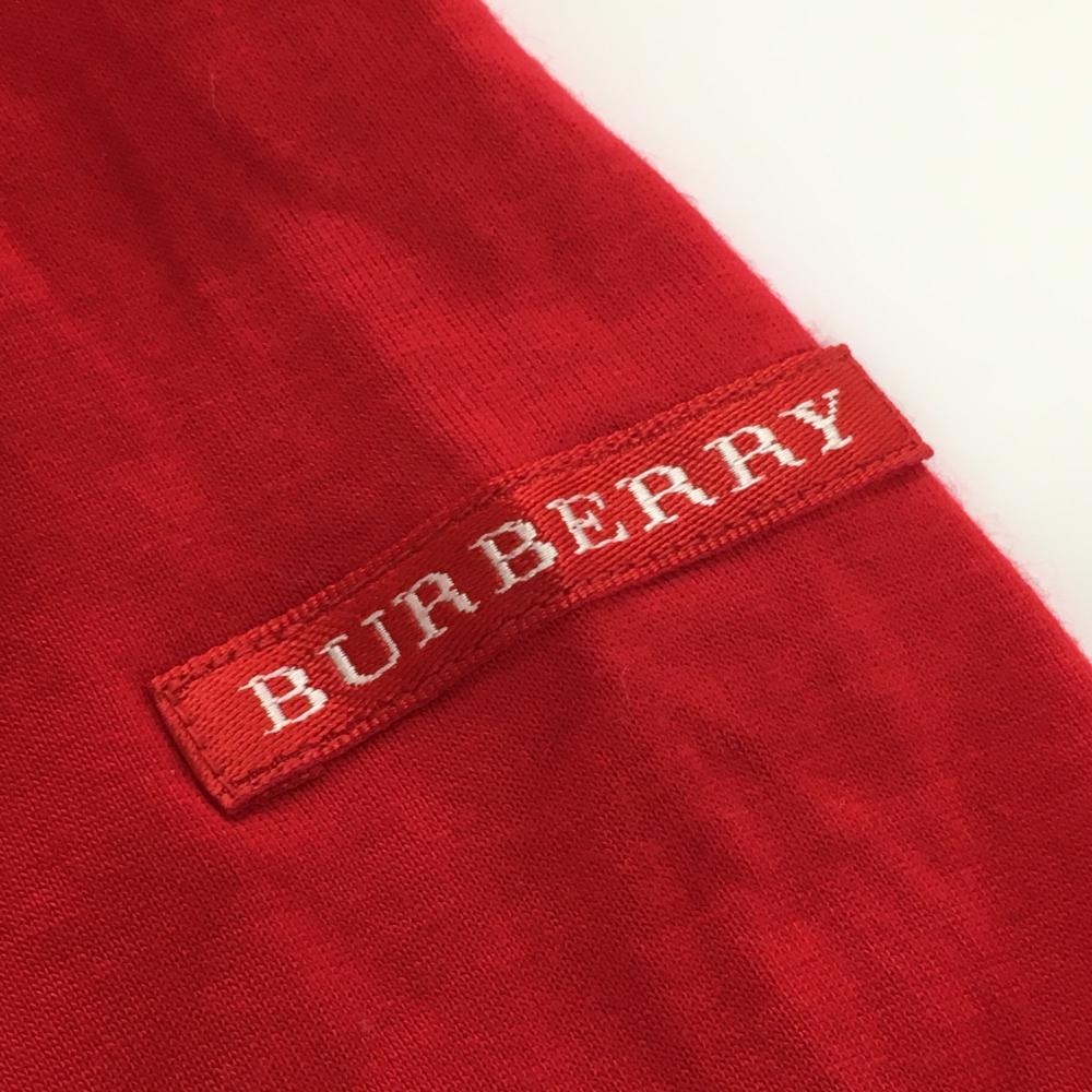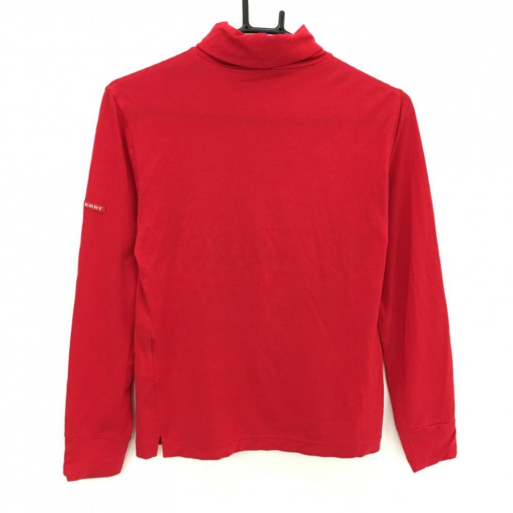 【美品】バーバリーゴルフ 長袖ハイネックシャツ レッド 無地 袖ロゴ レディース M ゴルフウェア BURBERRY GOLF
