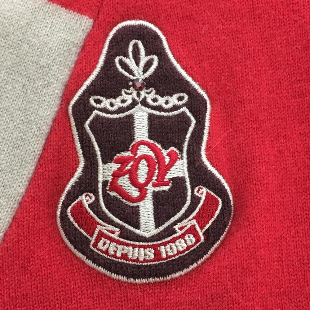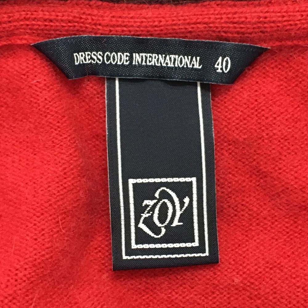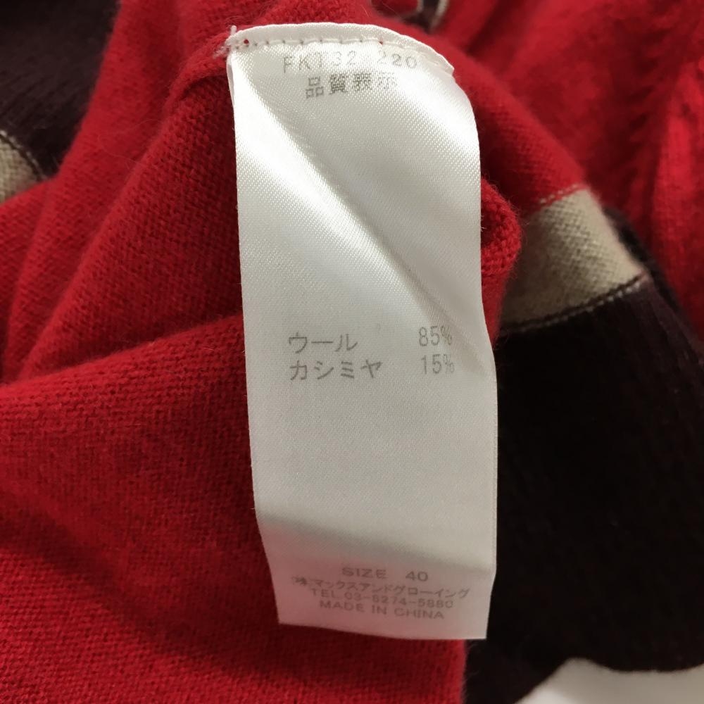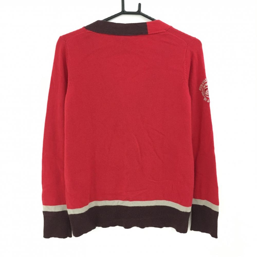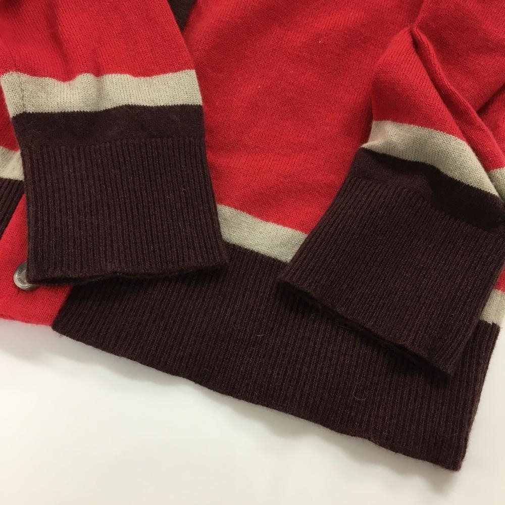 【美品】ゾーイ カーディガン レッド×ブラウン ロゴ刺しゅう ウール カシミヤ レディース 40(L) ゴルフウェア ZOY