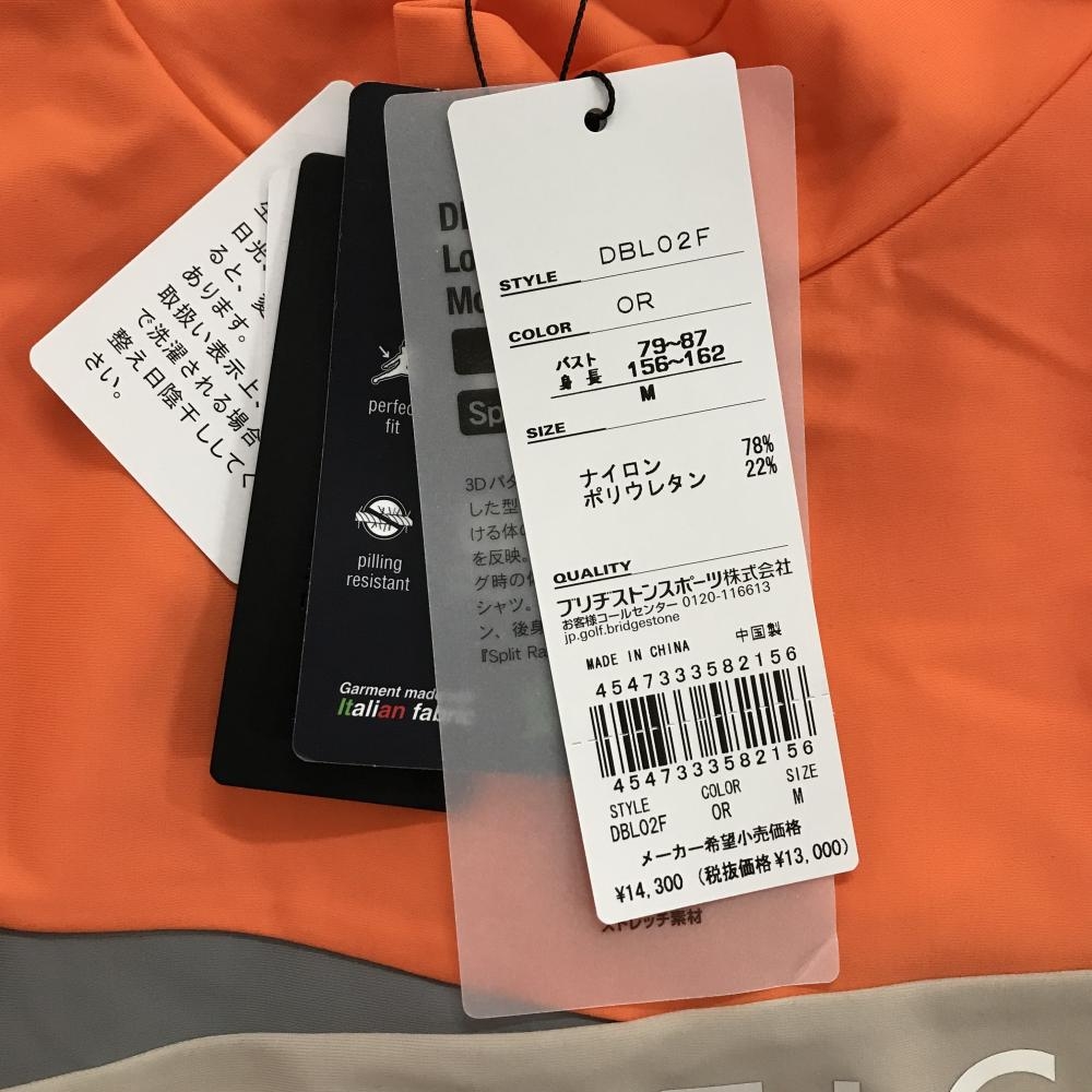 【新品】ブリヂストン 長袖ハイネックシャツ オレンジ場tyグレー 胸元プリント バイカラー レディース M ゴルフウェア Bridgestone