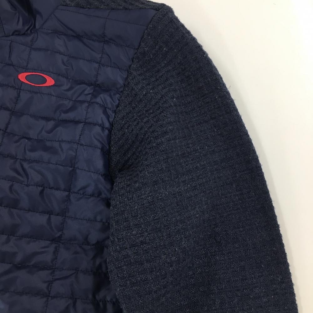 オークリー 切替中綿ジャケット ネイビー×ピンク 袖・後ろ身頃ニット格子編み ダブルジップ 蓄熱裏地 メンズ M ゴルフウェア Oakley