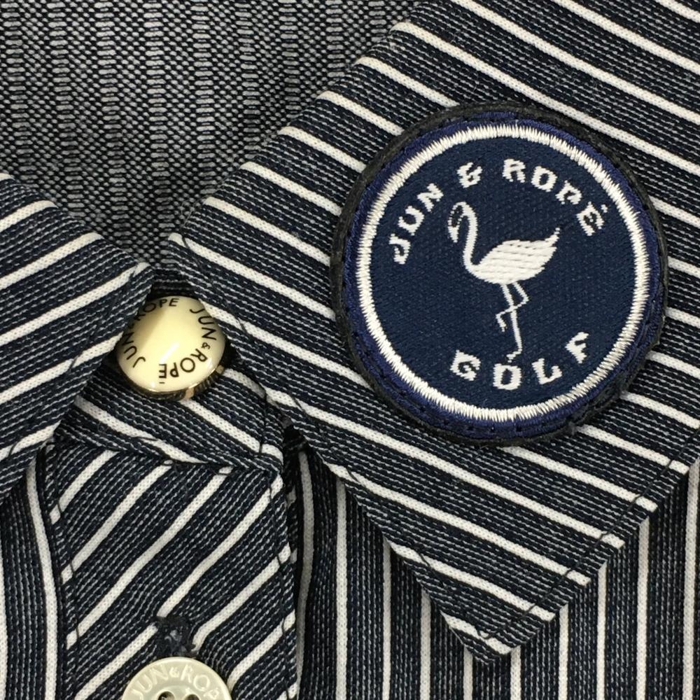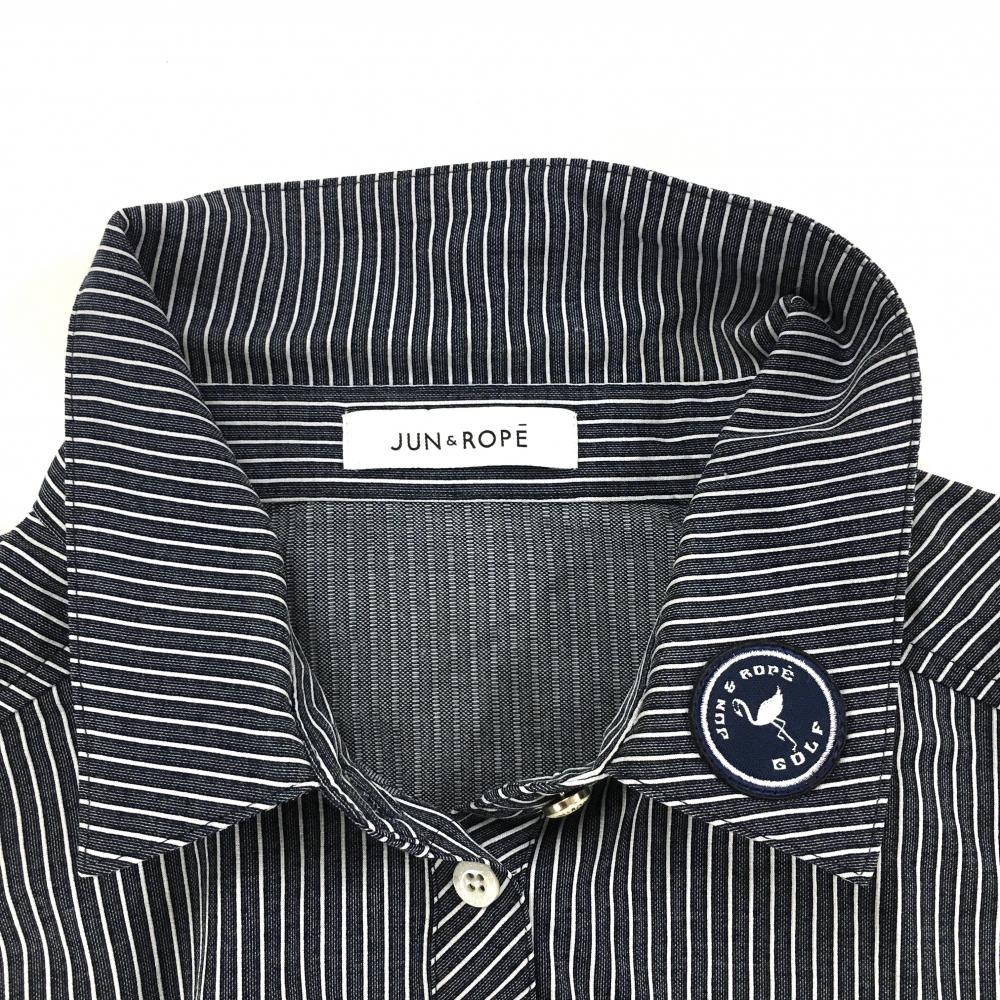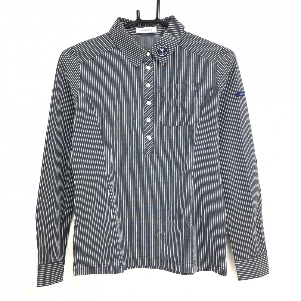 ジュンアンドロペ 長袖ポロシャツ グレー×白 ストライプ レディース S ゴルフウェア JUN&ROPE