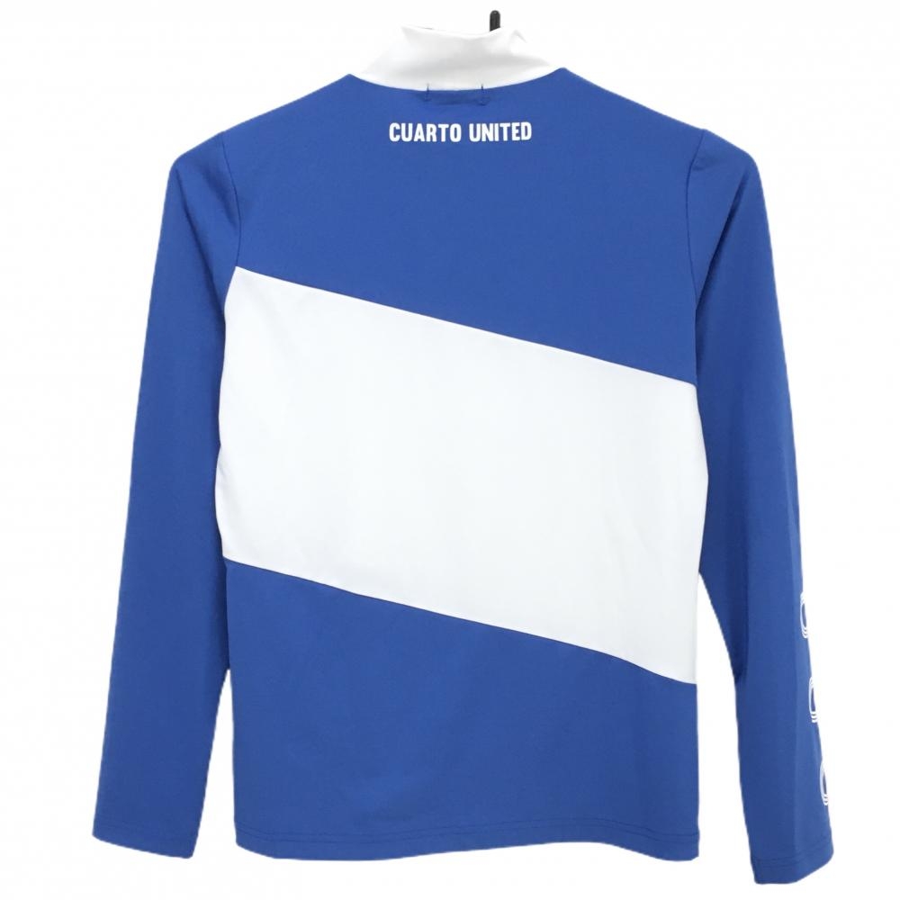 【超美品】クアルトユナイテッド 長袖ハイネックシャツ ブルー×白 フロントロゴ ストレッチ レディース S ゴルフウェア CUARTO UNITED