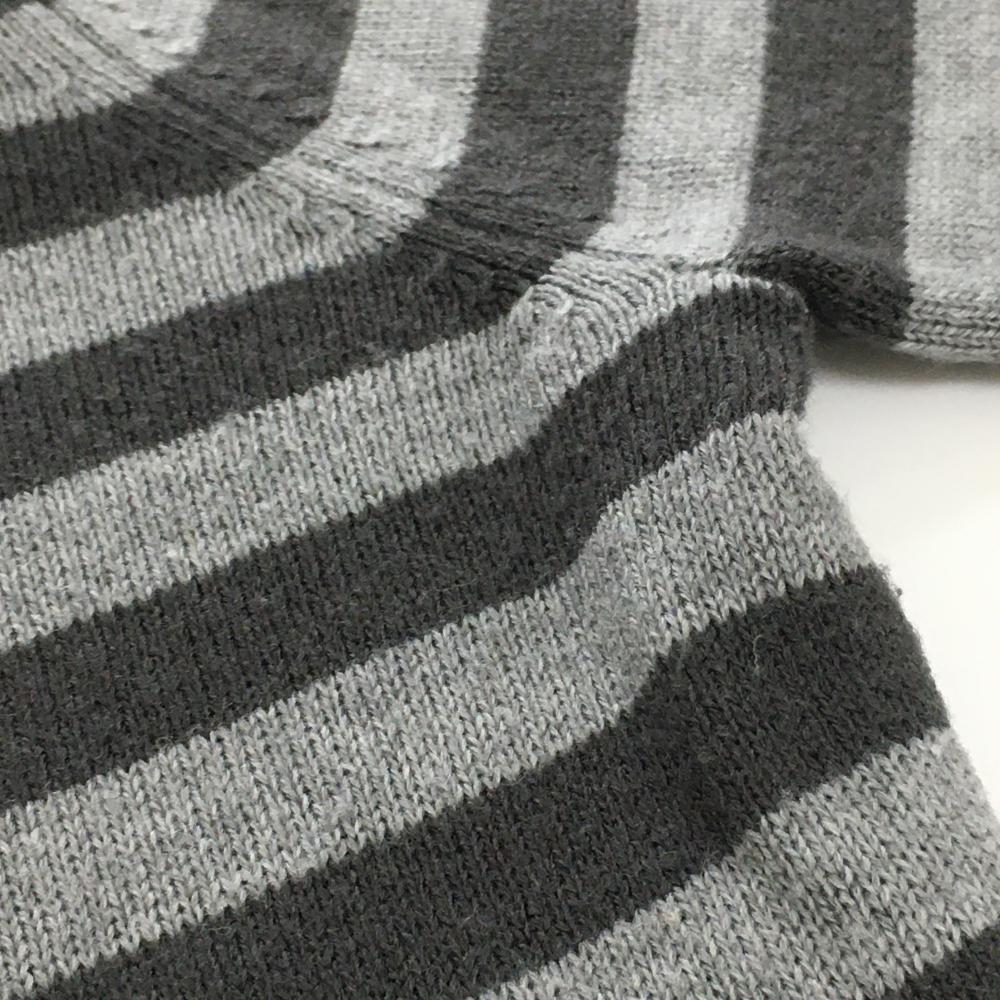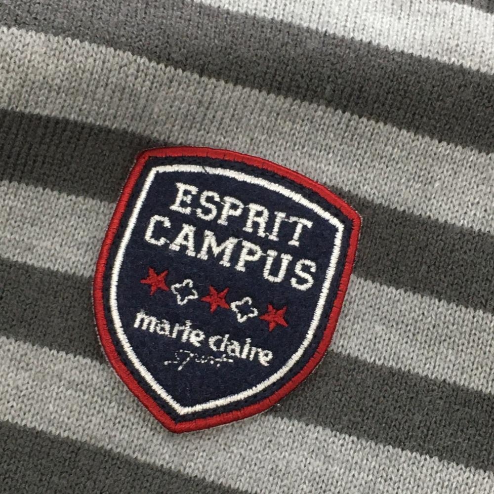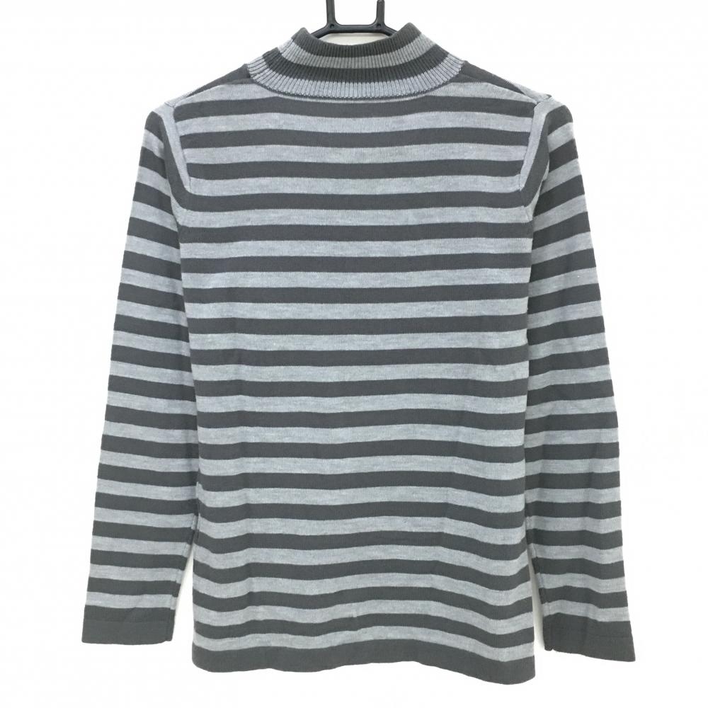 【超美品】マリクレールスポール ハイネックセーター グレー×ライトグレー ボーダー ワッペン レディース L ゴルフウェア marie claire