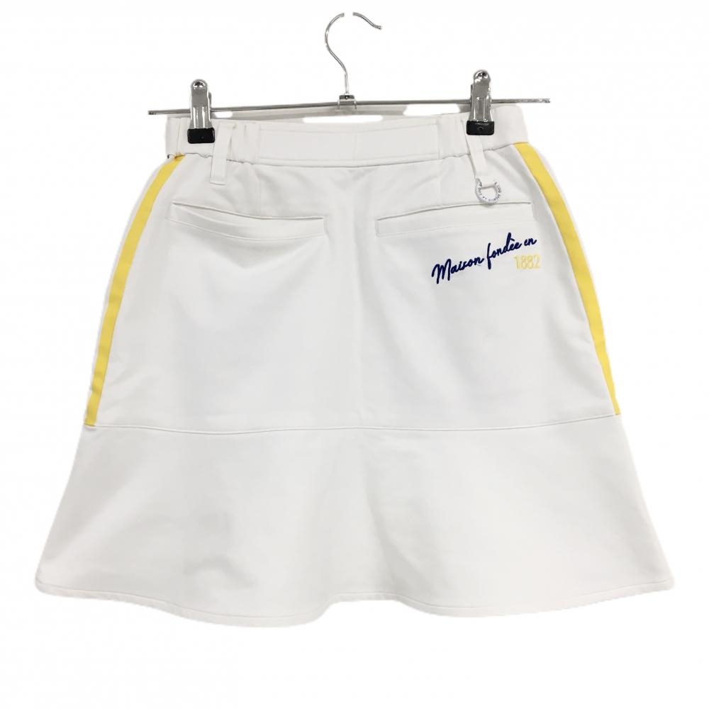 【美品】ルコックゴルフ スカート 白×ブルー×イエロー 一部ウエストゴム サイドライン レディース 7 ゴルフウェア le coq sportif