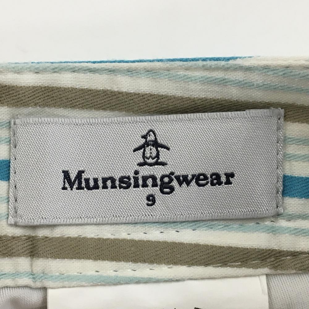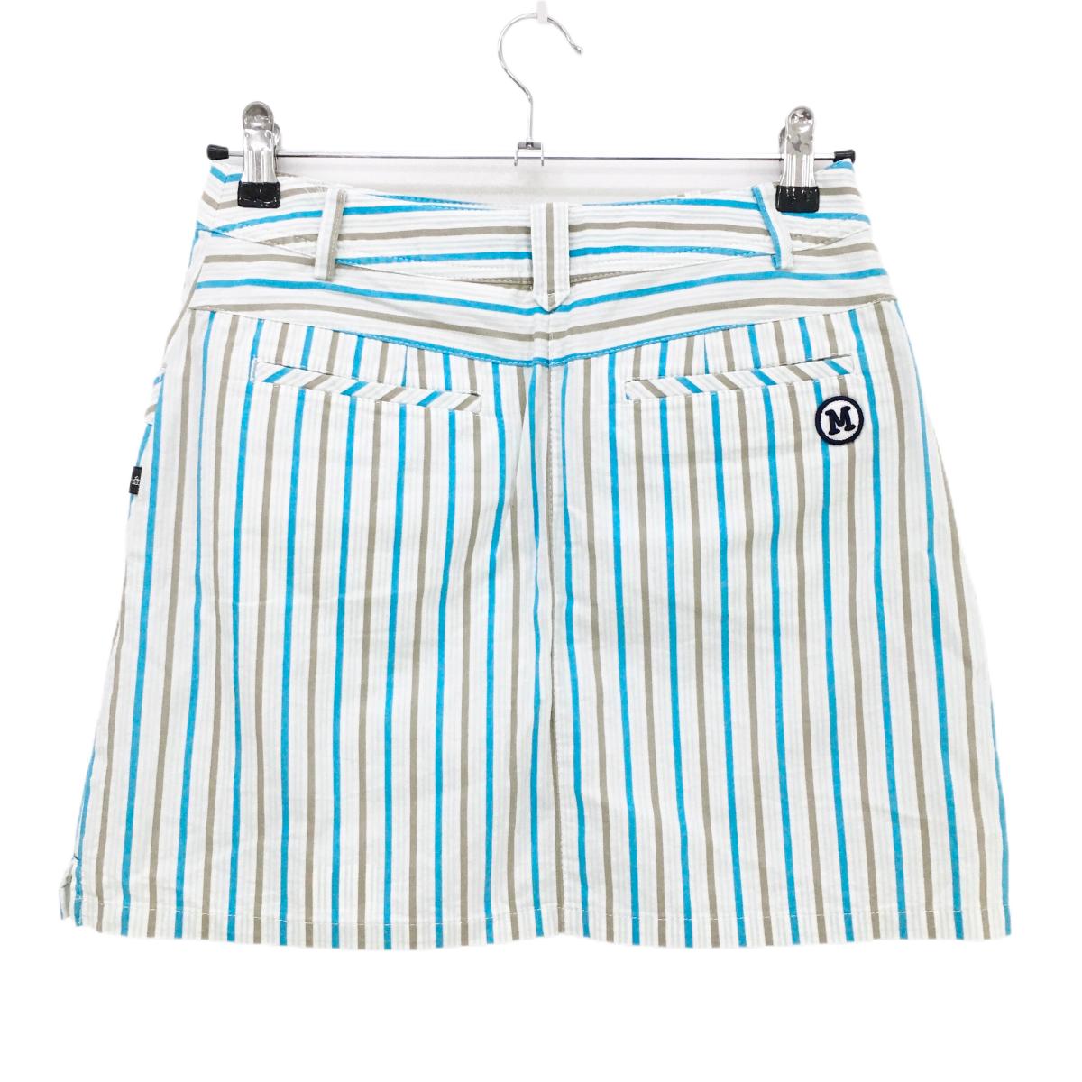 【美品】マンシングウェア スカート 白×ブルー ストライプ 内側インナーパンツ レディース 9 ゴルフウェア Munsingwear