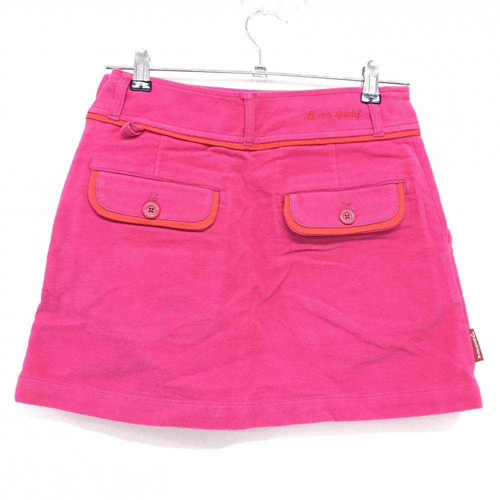 【美品】ルコックゴルフ コーデュロイスカート ピンク×レッド ウエストダブルボタン レディース 7 ゴルフウェア le coq sportif