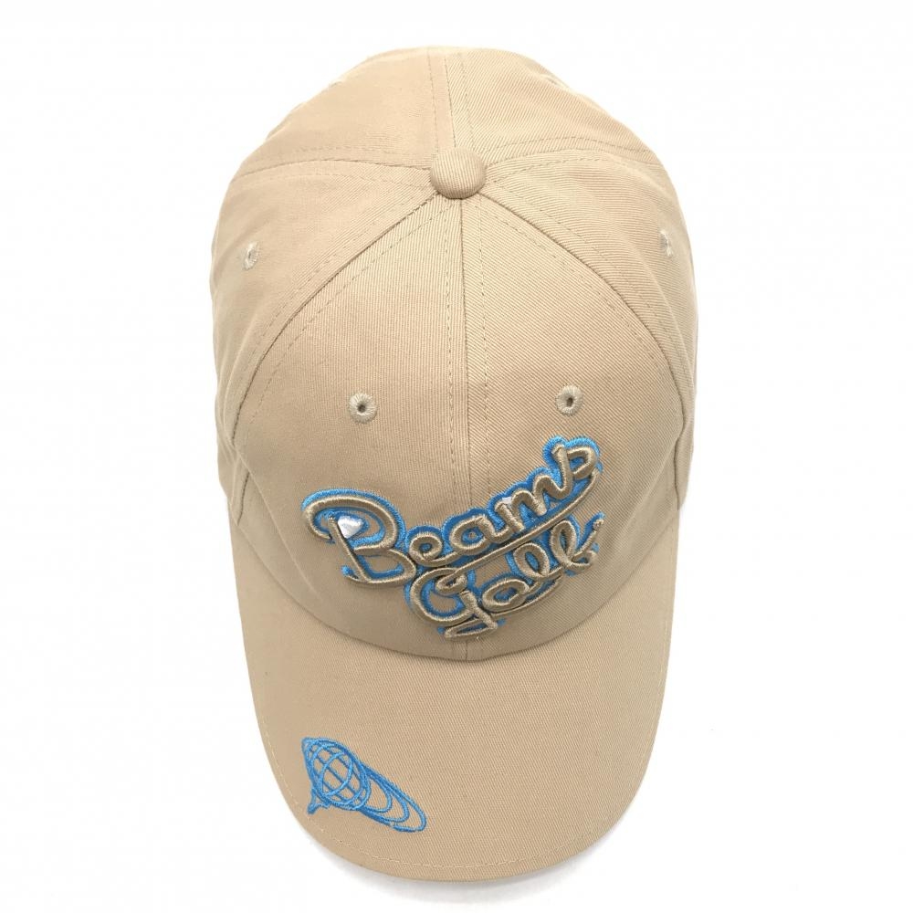 【超美品】ビームスゴルフ キャップ ベージュ×ライトブルー 立体ロゴ刺しゅう ゴルフウェア BEAMS GOLF