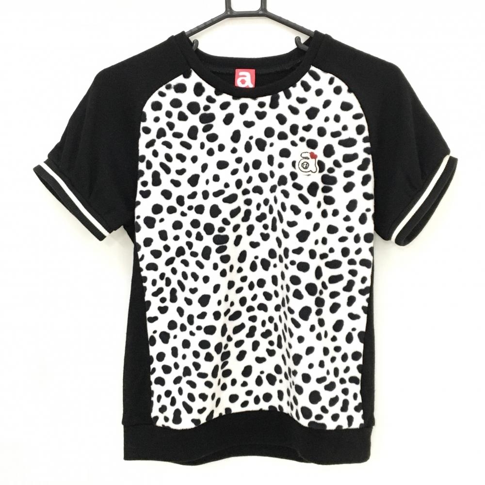 【美品】アルチビオ ネックウォーマー付半袖セーター 黒×白 前身頃ダルメシアン柄 ニット レディース 38(M) ゴルフウェア archivio