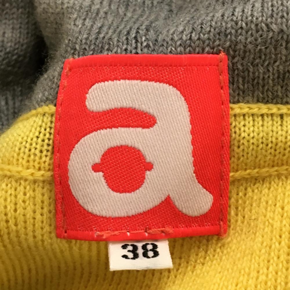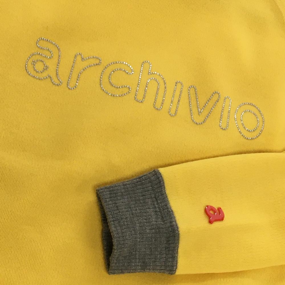 【美品】アルチビオ セーター イエロー パーカー風 ラインストーンロゴ ウール100% ニット レディース 38(M) ゴルフウェア archivio