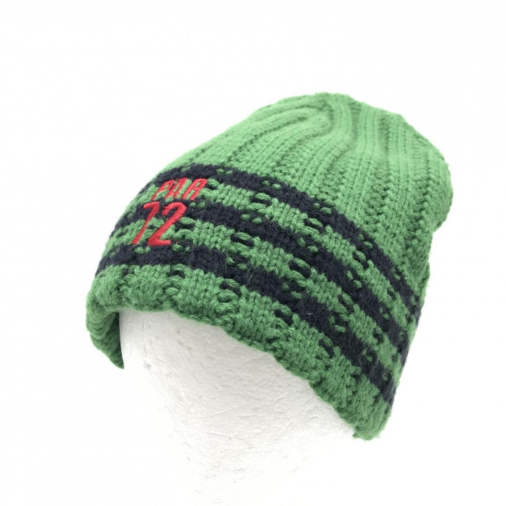 【超美品】パーセッタンタドゥエ ニット帽 グリーン×ネイビー アクリル100% FREE ゴルフウェア PAR72