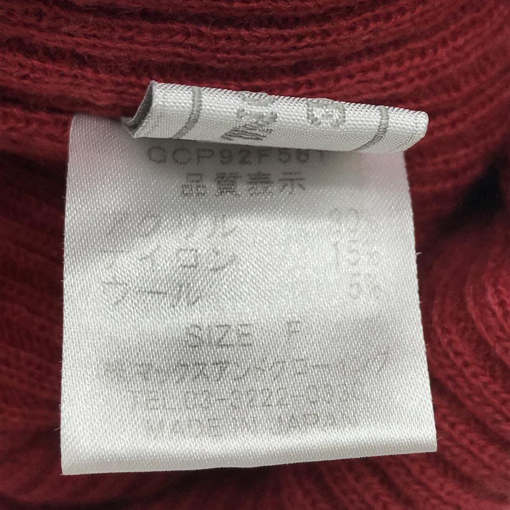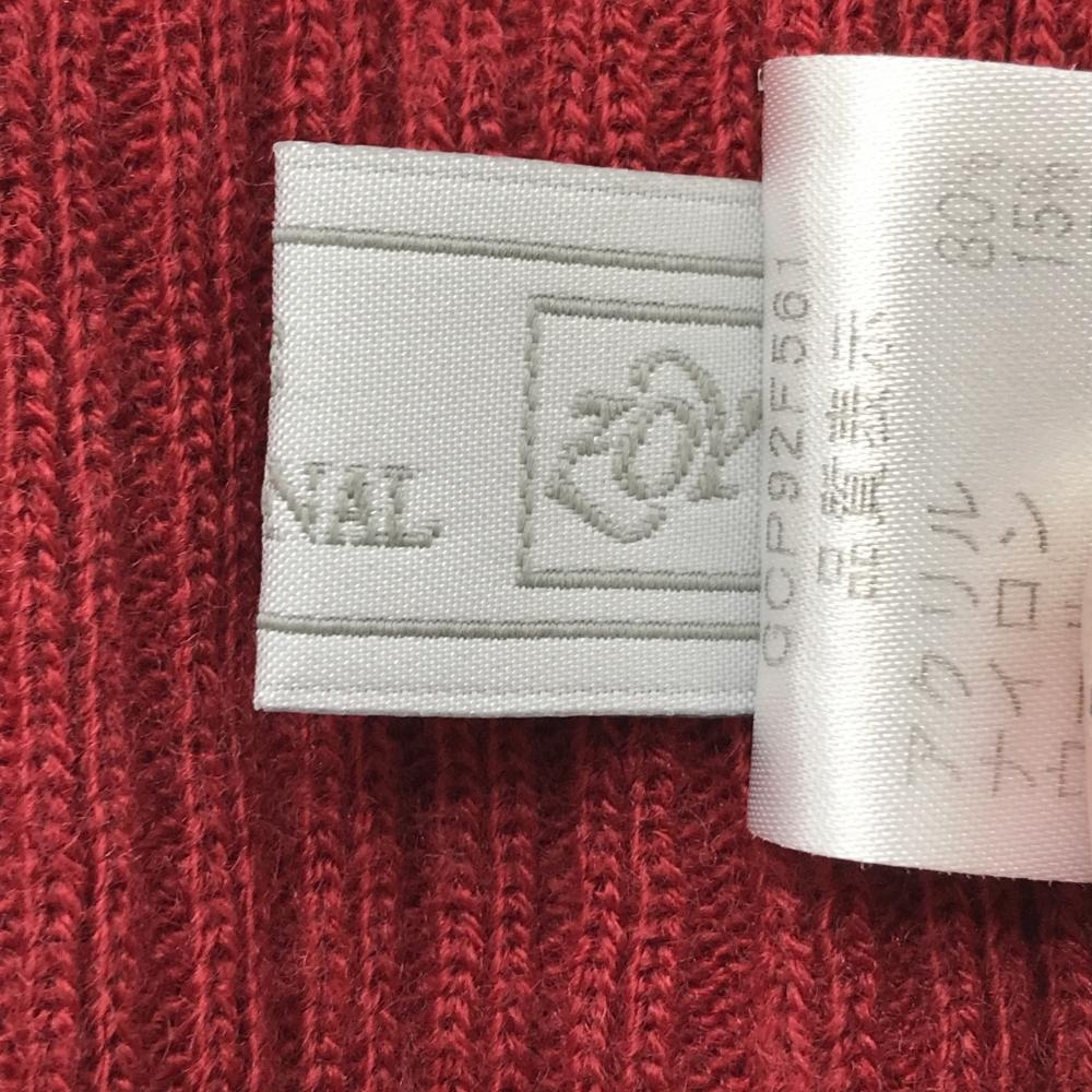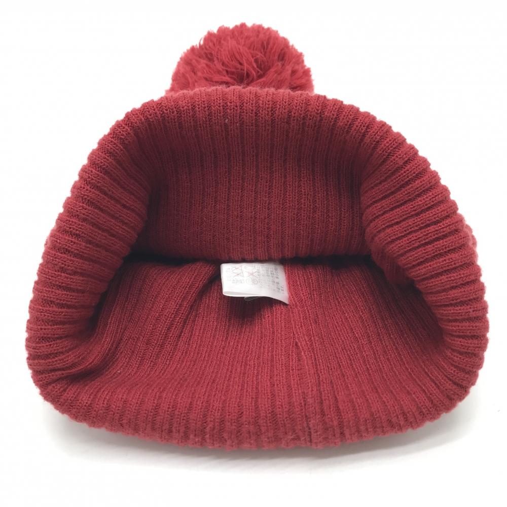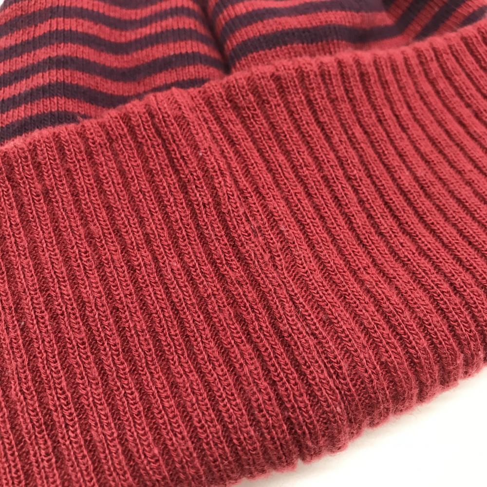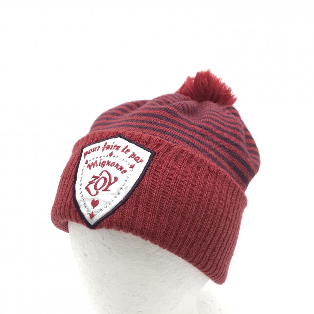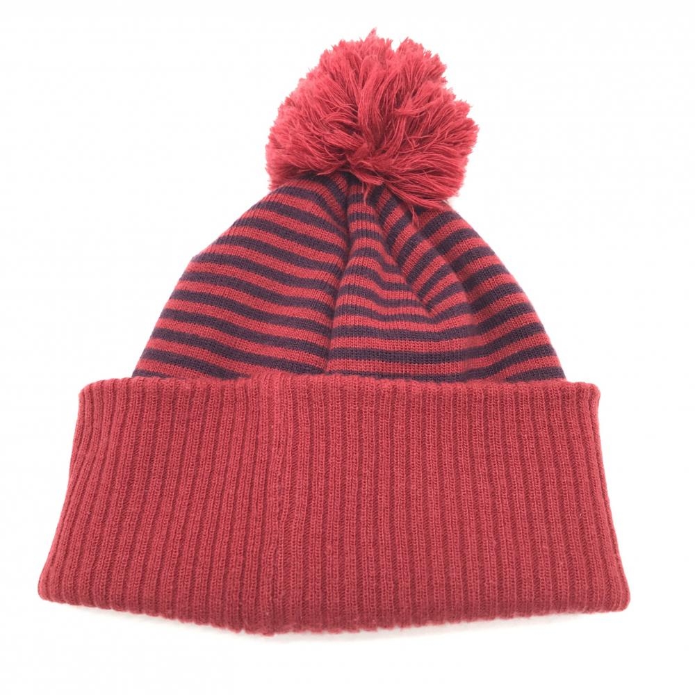 【美品】ゾーイ ニット帽 レッド×ダークパープル系 ボーダー ウール混 ボンボン付 レディース F ゴルフウェア ZOY