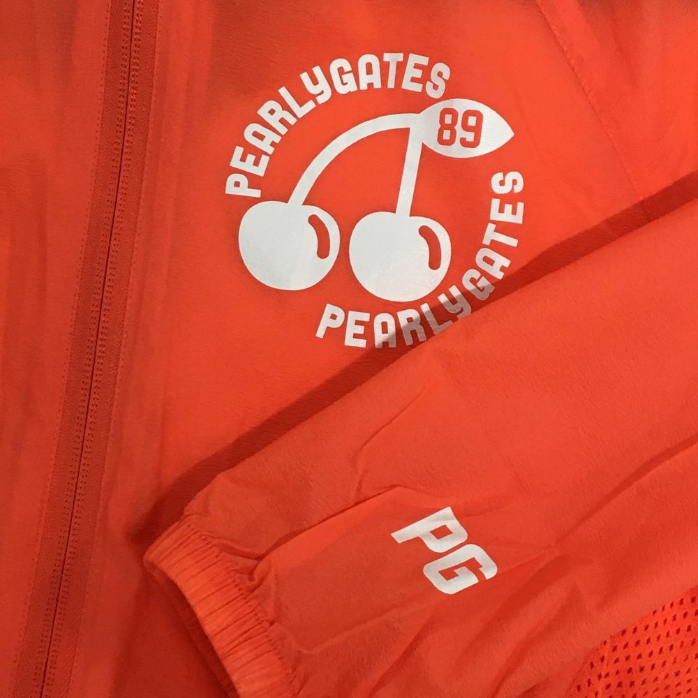 【美品】パーリーゲイツ ナイロンジップパーカー オレンジ 薄手 サクランボ ジャケット レディース 0(S) ゴルフウェア PEARLY GATES