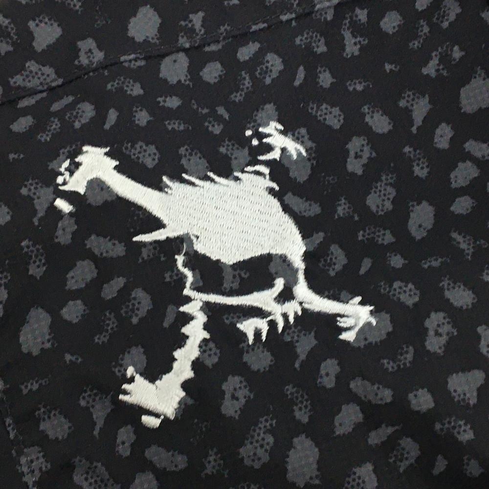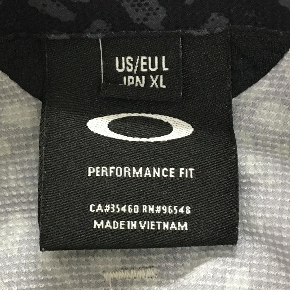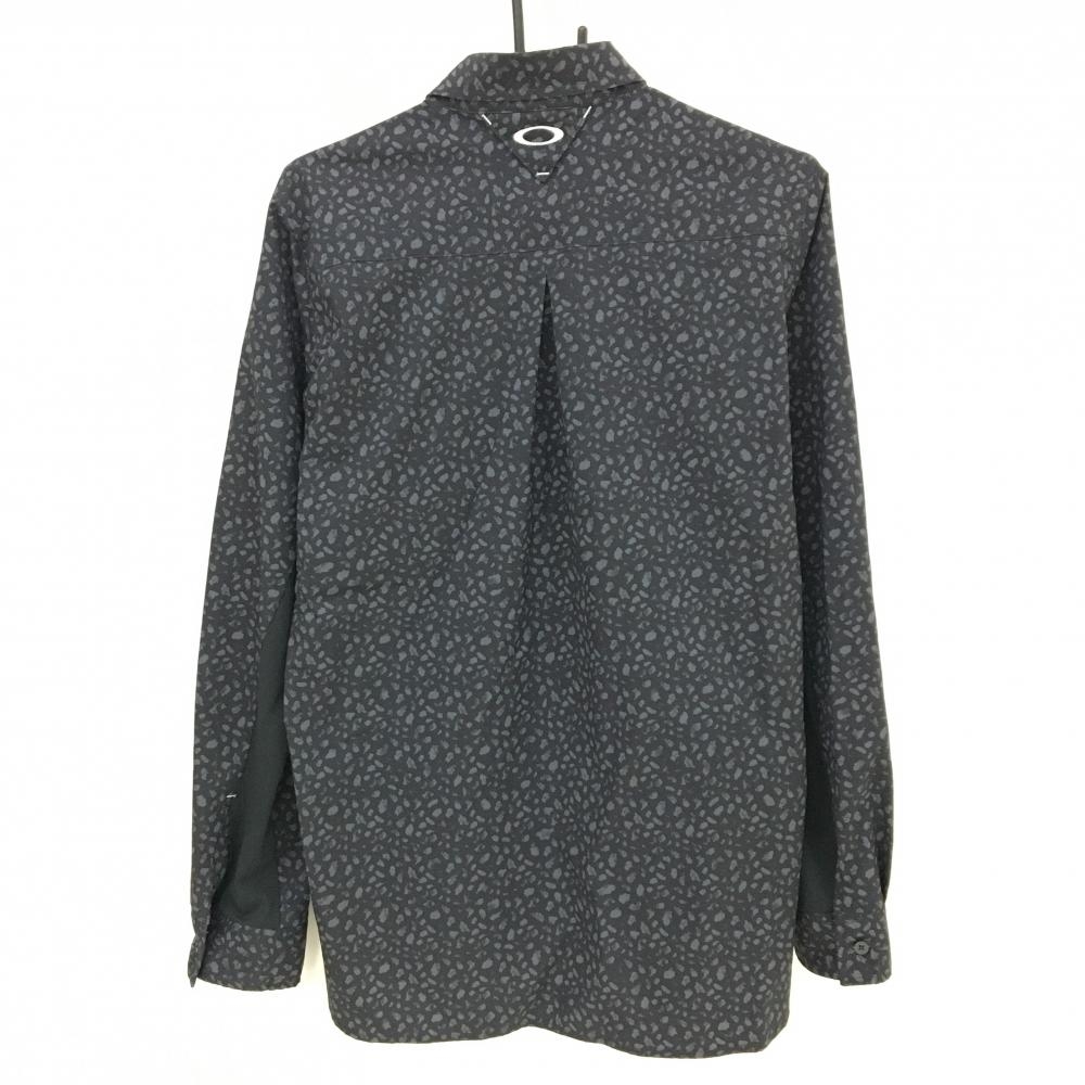 オークリー 長袖シャツ 黒×グレー 総柄 袖下切替素材 胸ポケット付 メンズ XL ゴルフウェア Oakley
