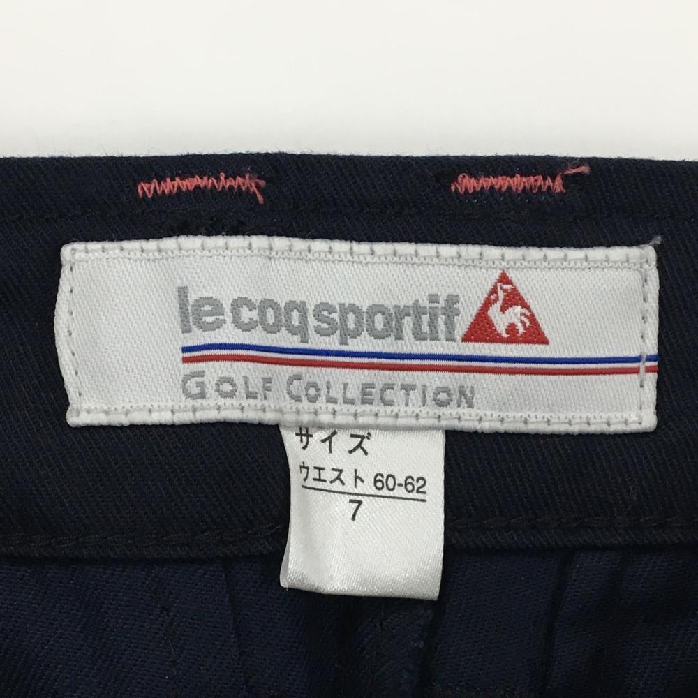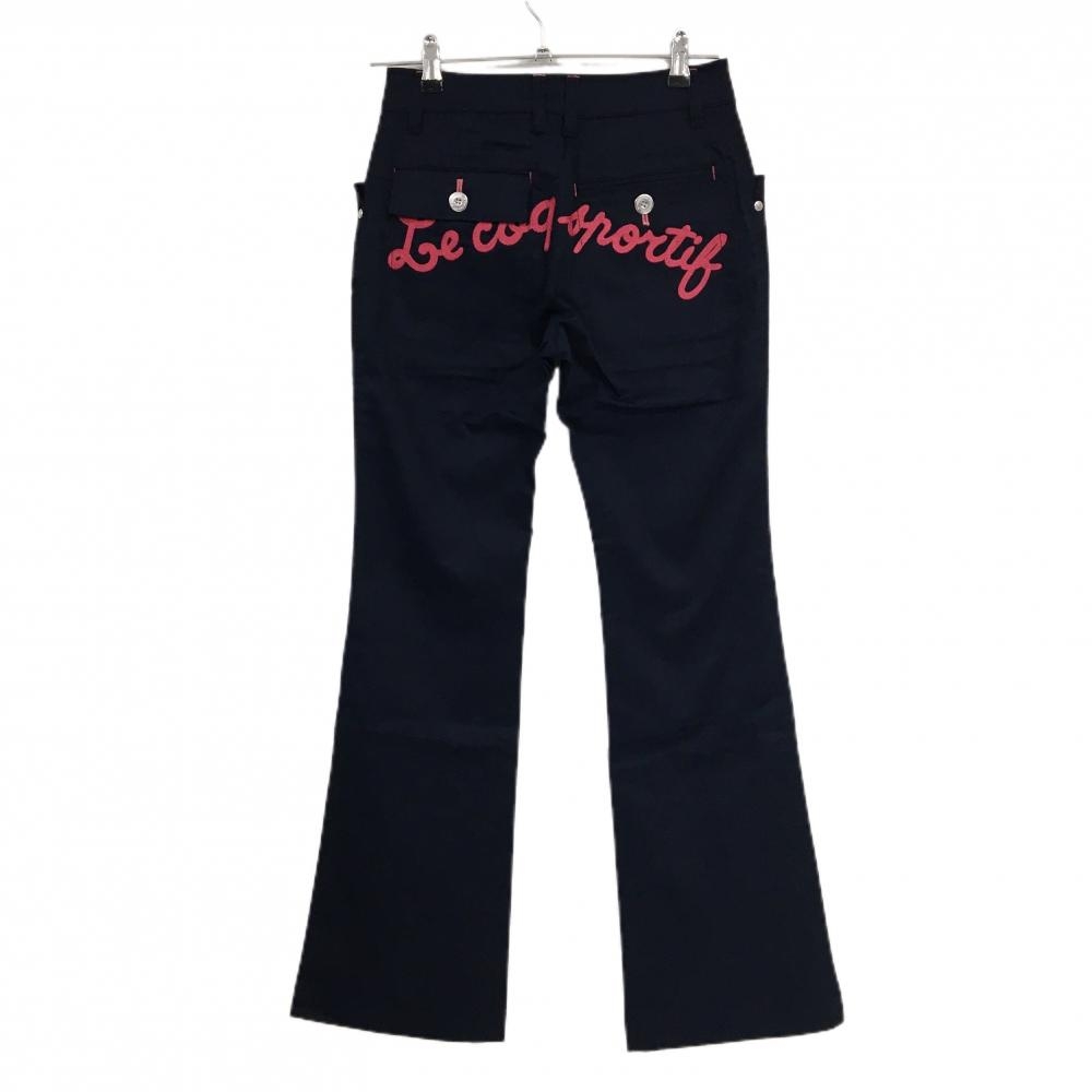 【超美品】ルコックゴルフ パンツ ネイビー×ピンク×白 ヒップ・サイド刺しゅう レディース 7 ゴルフウェア le coq sportif