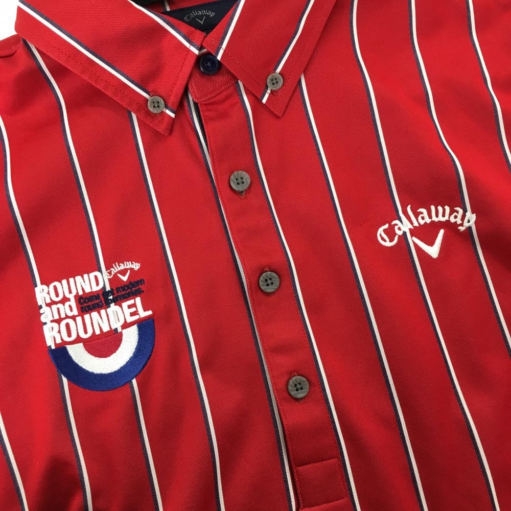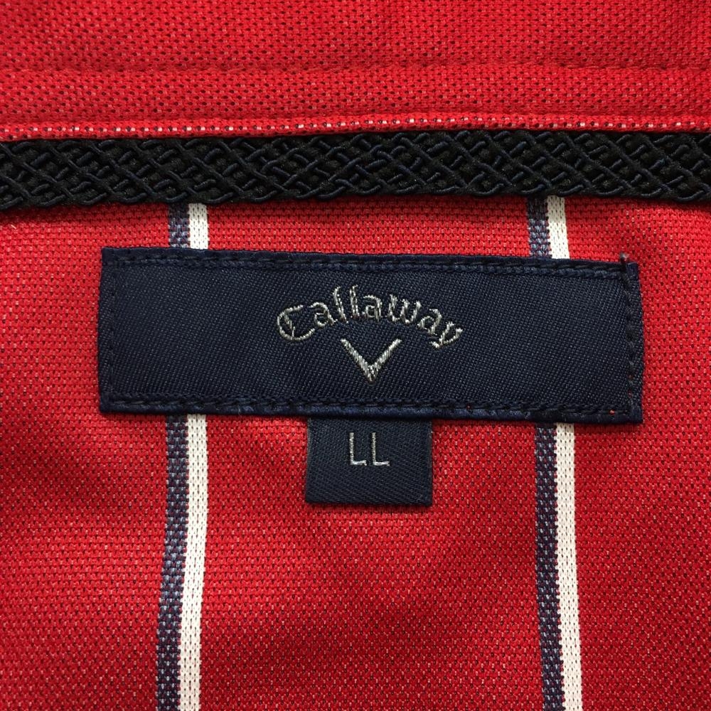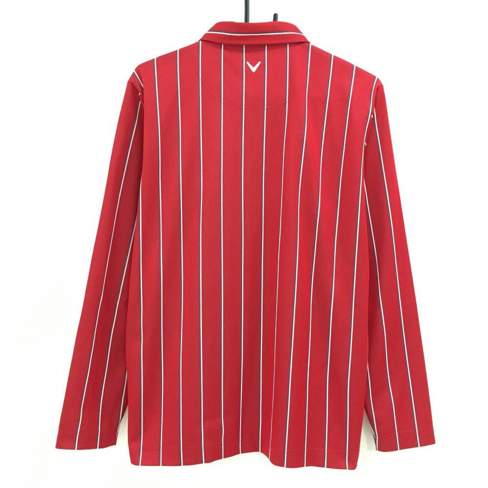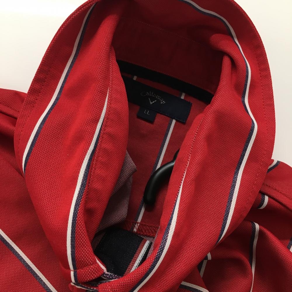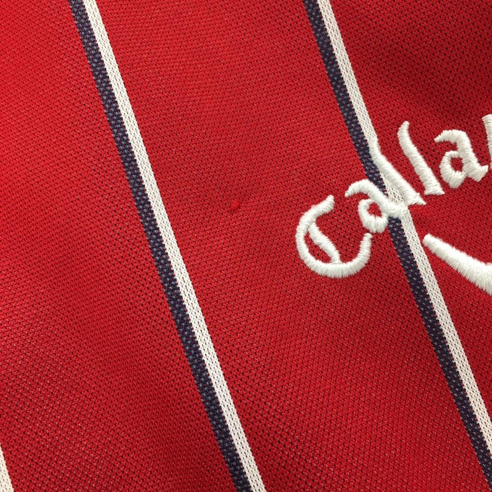 【美品】キャロウェイ 長袖ポロシャツ レッド×白 ストライプ ボタンダウン メンズ LL ゴルフウェア Callaway