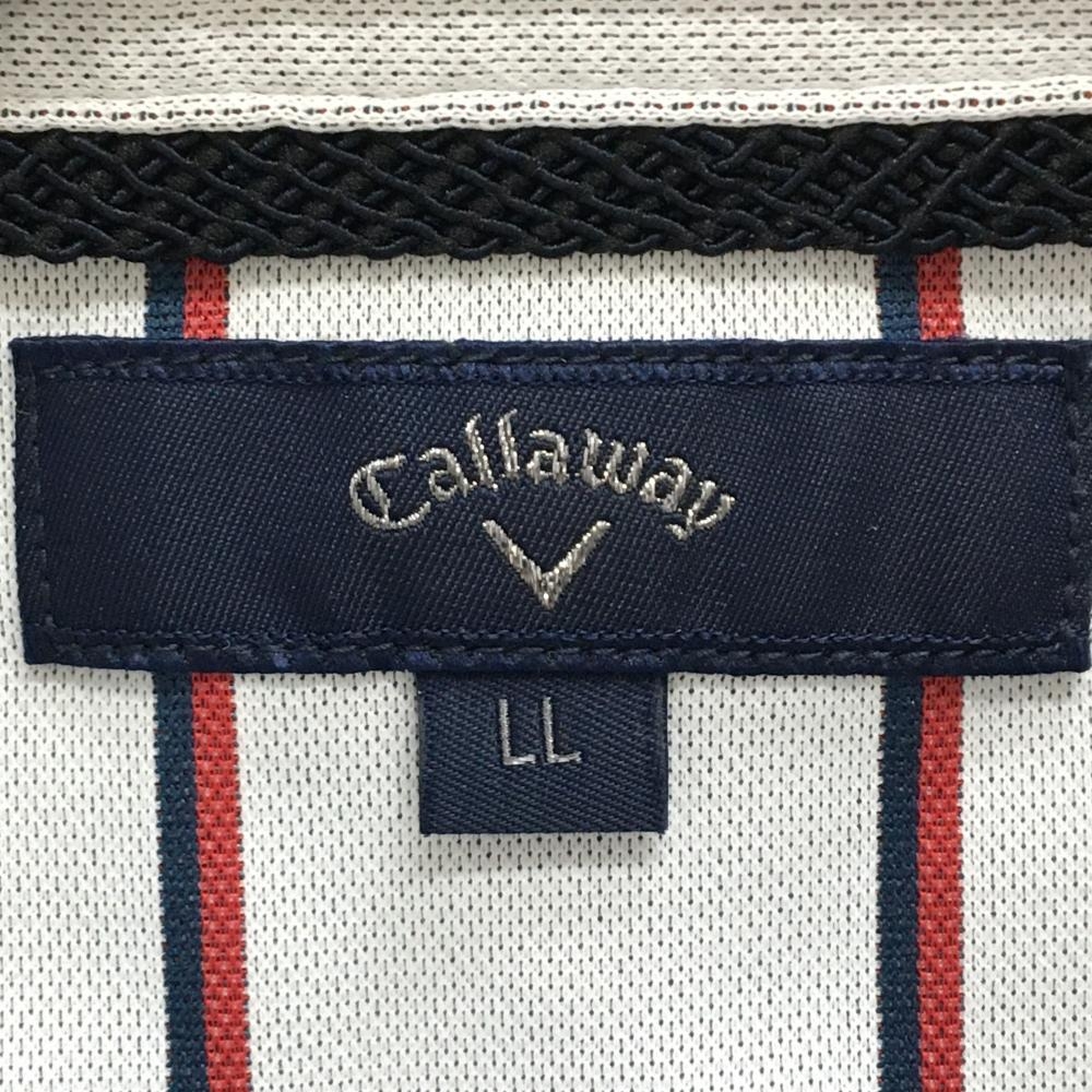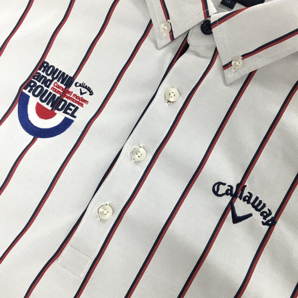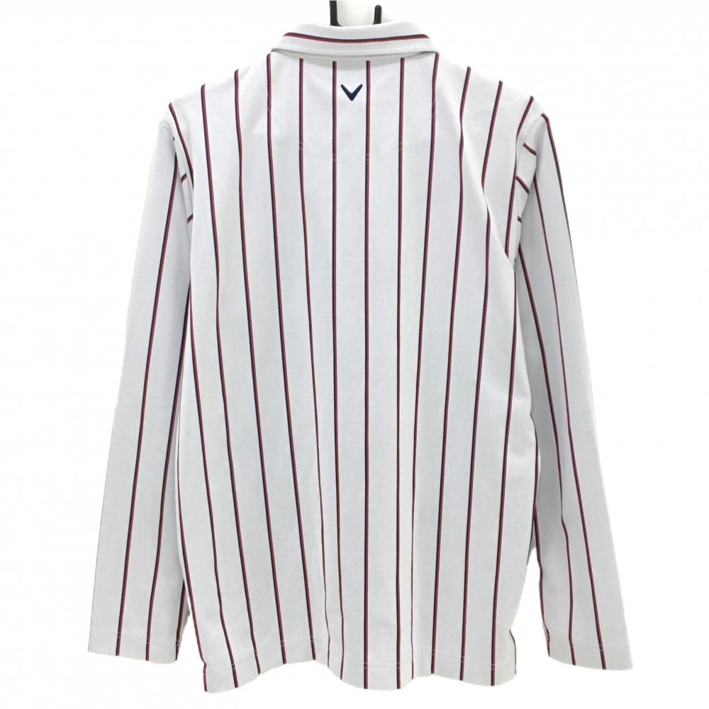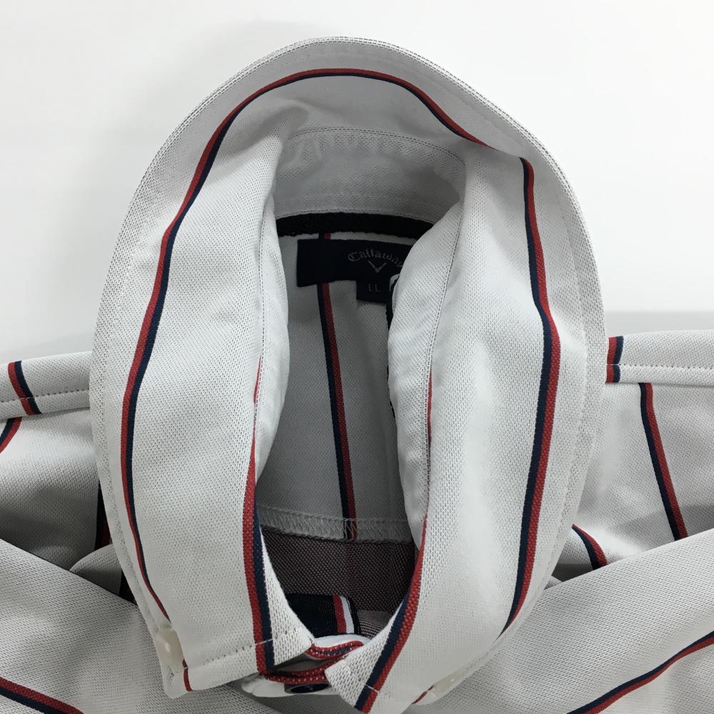キャロウェイ 長袖ポロシャツ 白×レッド ストライプ ボタンダウン メンズ LL ゴルフウェア Callaway