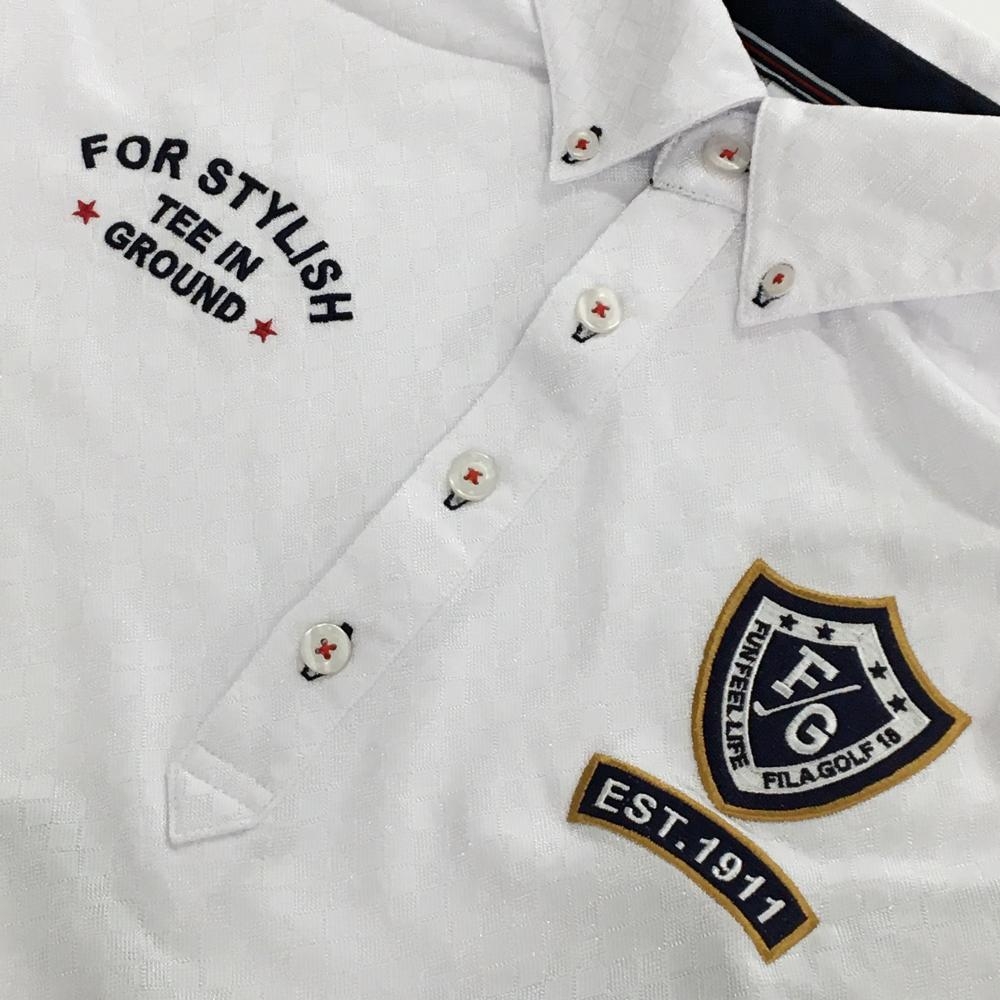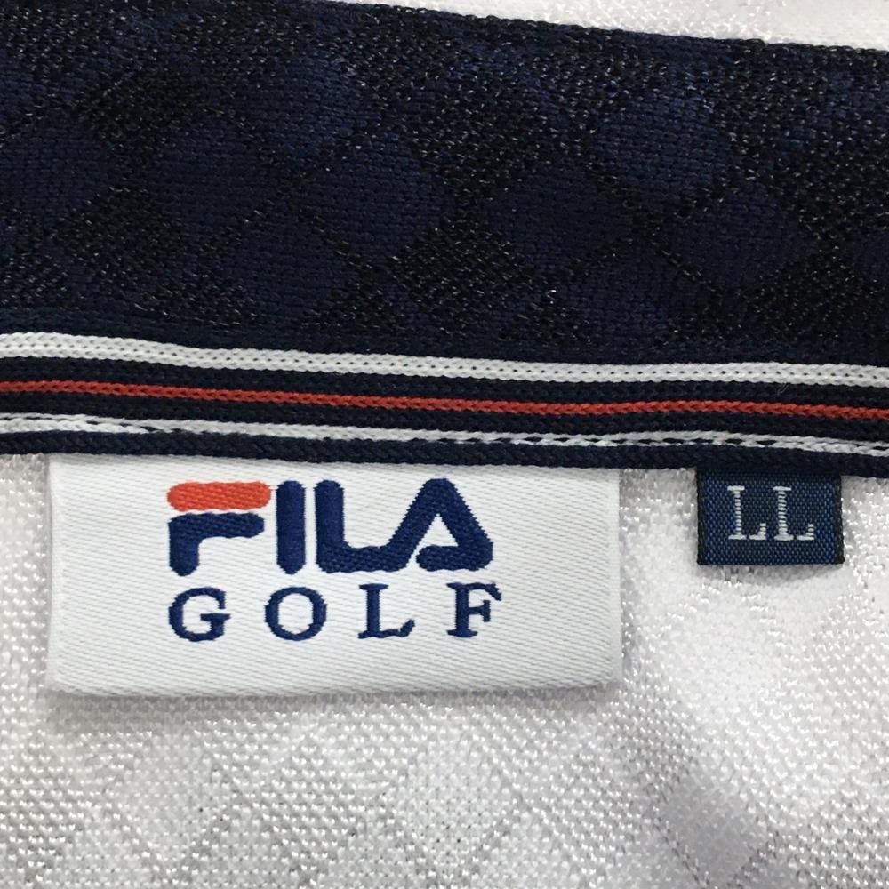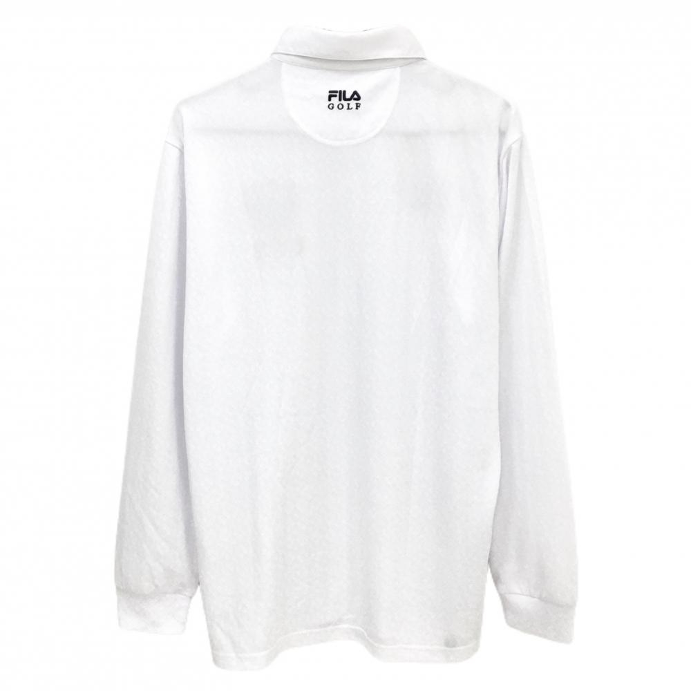 【超美品】フィラゴルフ 長袖ポロシャツ 白 ダイヤ柄地模様 ボタンダウン メンズ LL ゴルフウェア FILA GOLF