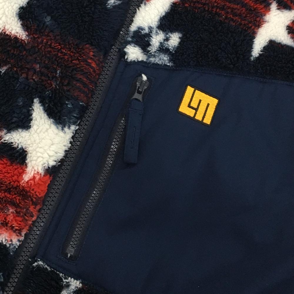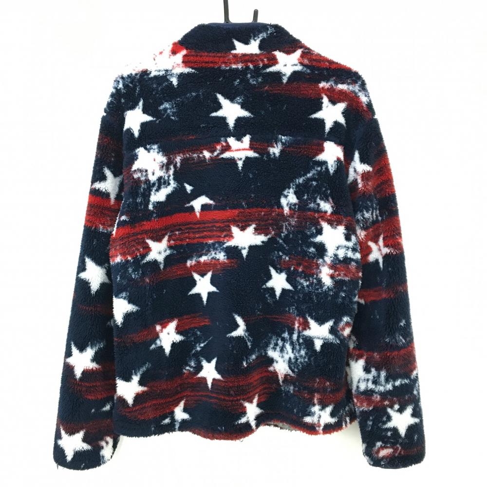 【美品】ラウドマウス ボアジャケット ネイビー×白 プリマスロック柄 星 胸元生地切替 メンズ L ゴルフウェア LOUDMOUTH