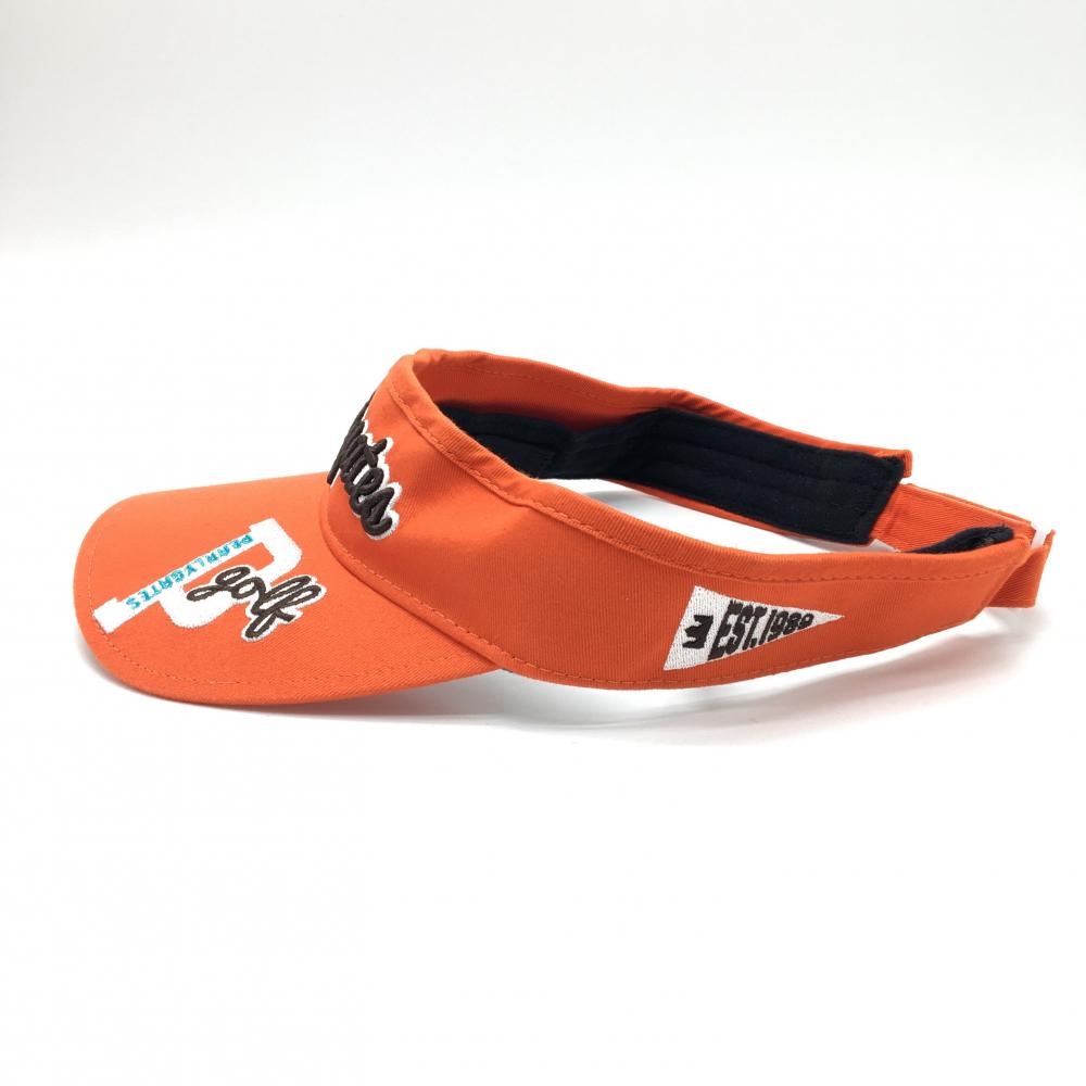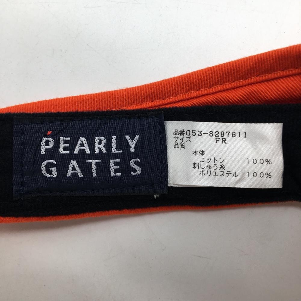 【美品】パーリーゲイツ サンバイザー オレンジ×黒 ロゴ立体ロゴ刺しゅう 汗取りパッド FR ゴルフウェア PEARLY GATES