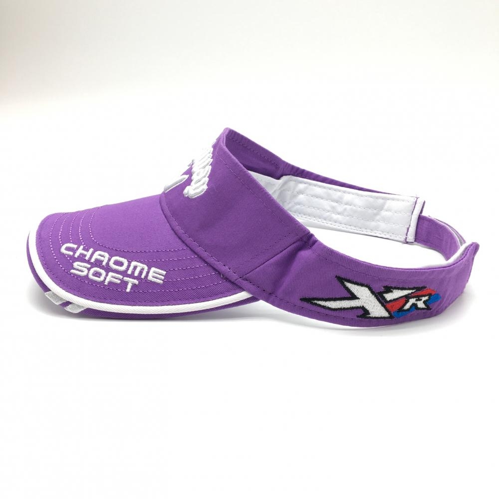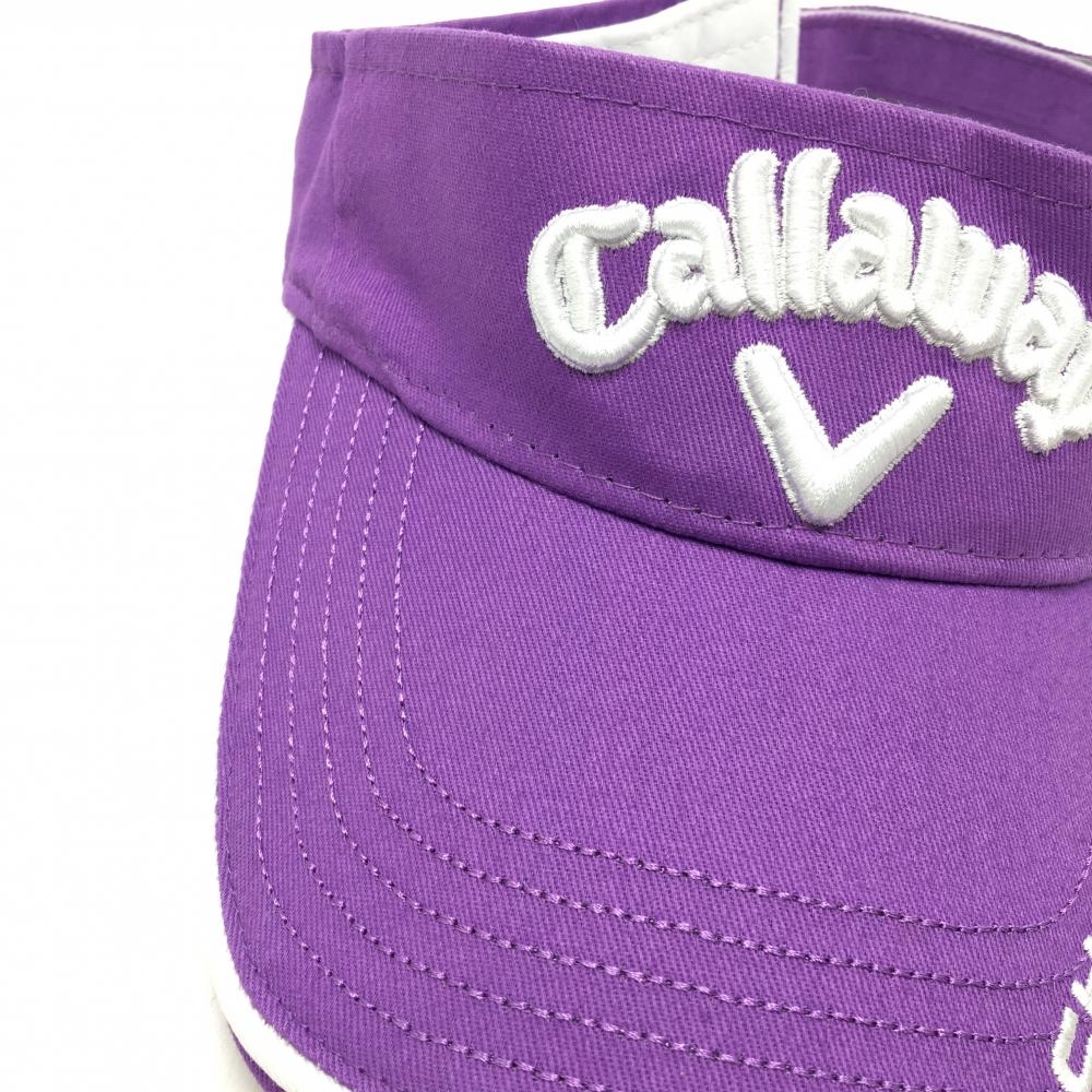 【美品】キャロウェイ サンバイザー パープル×白 立体ロゴ刺しゅう ゴルフウェア Callaway