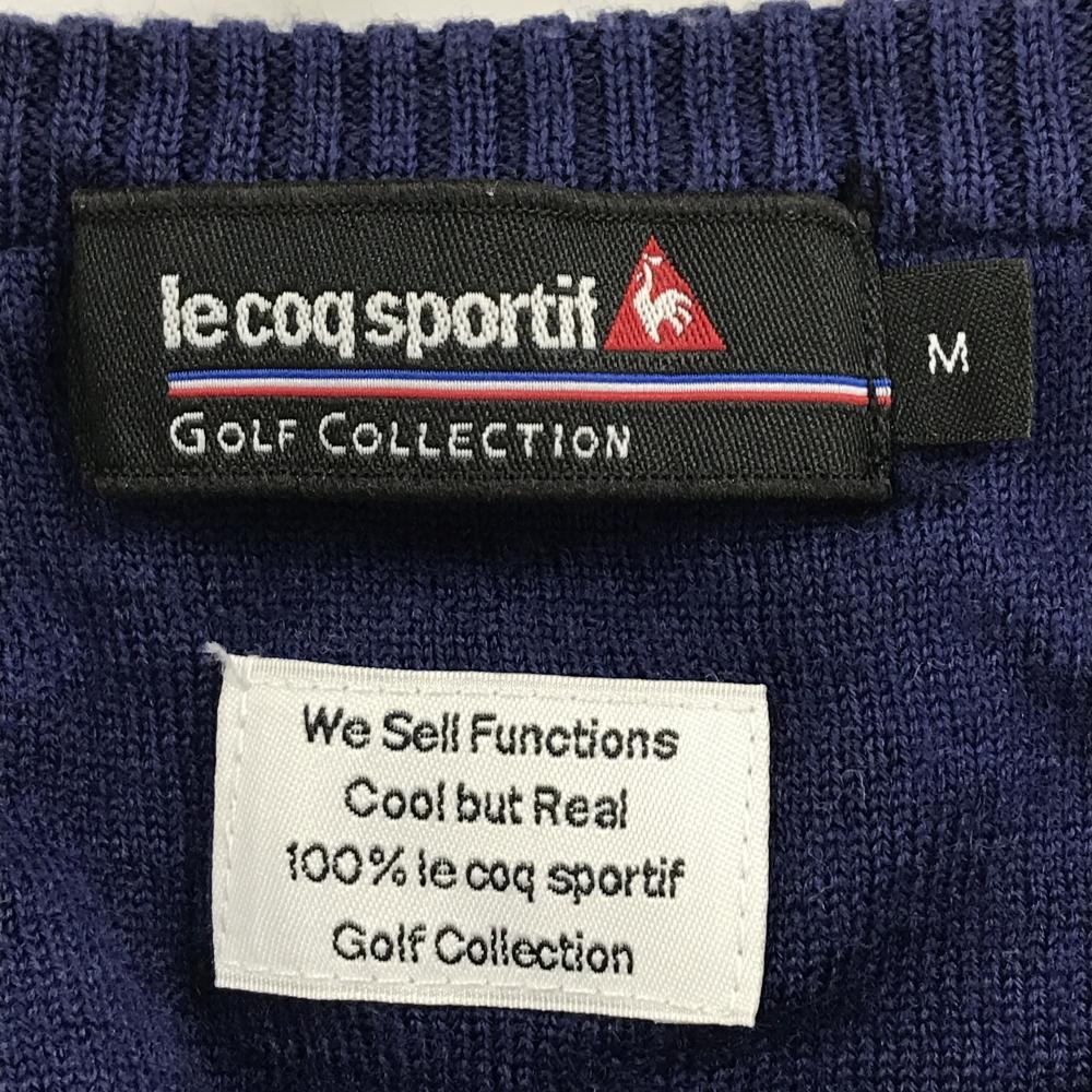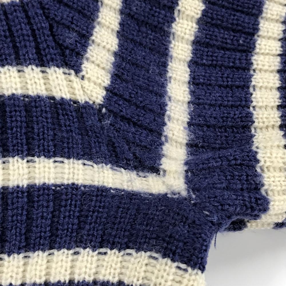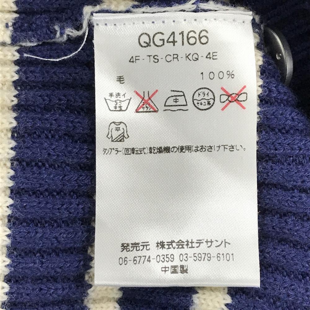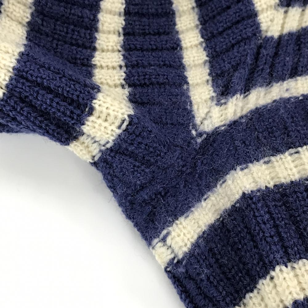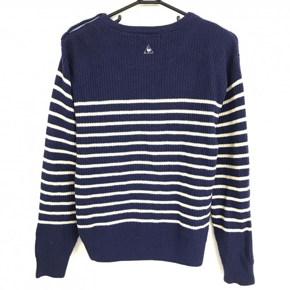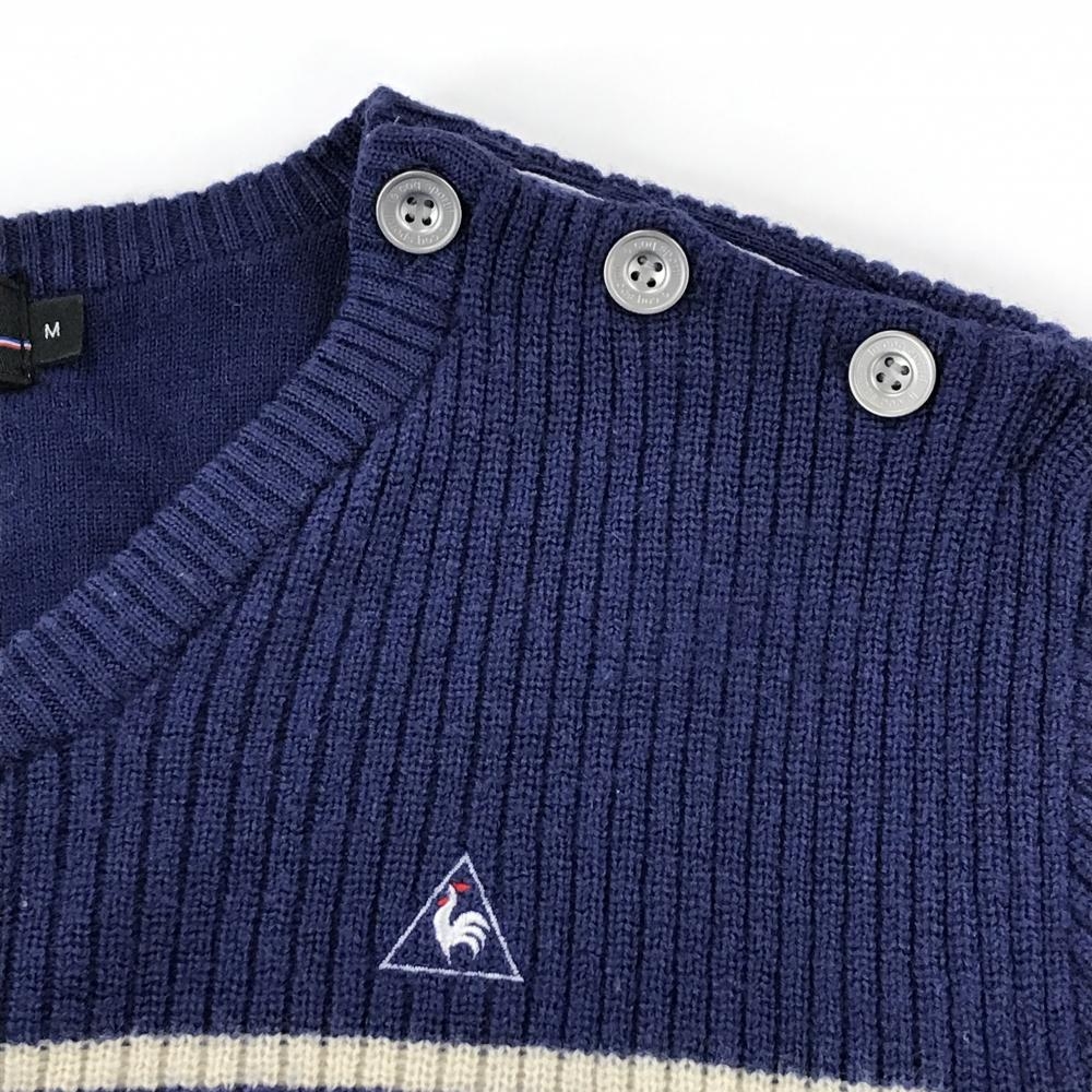 ルコックゴルフ セーター ネイビー×アイボリー ボーダー Vネック 肩ボタン ウール100% ニット メンズ M ゴルフウェア le coq sportif