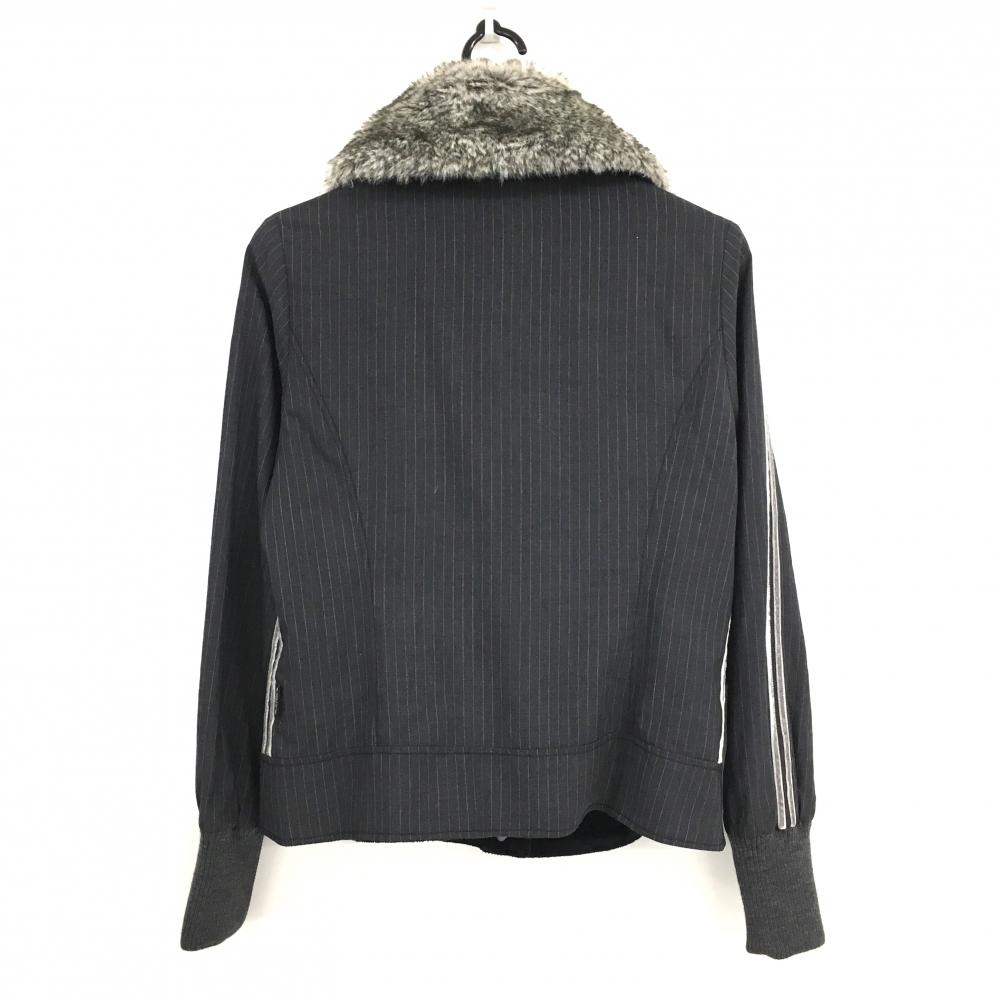【美品】キャロウェイ ファー付きジャケット グレー×白 ストライプ レディース M ゴルフウェア Callaway