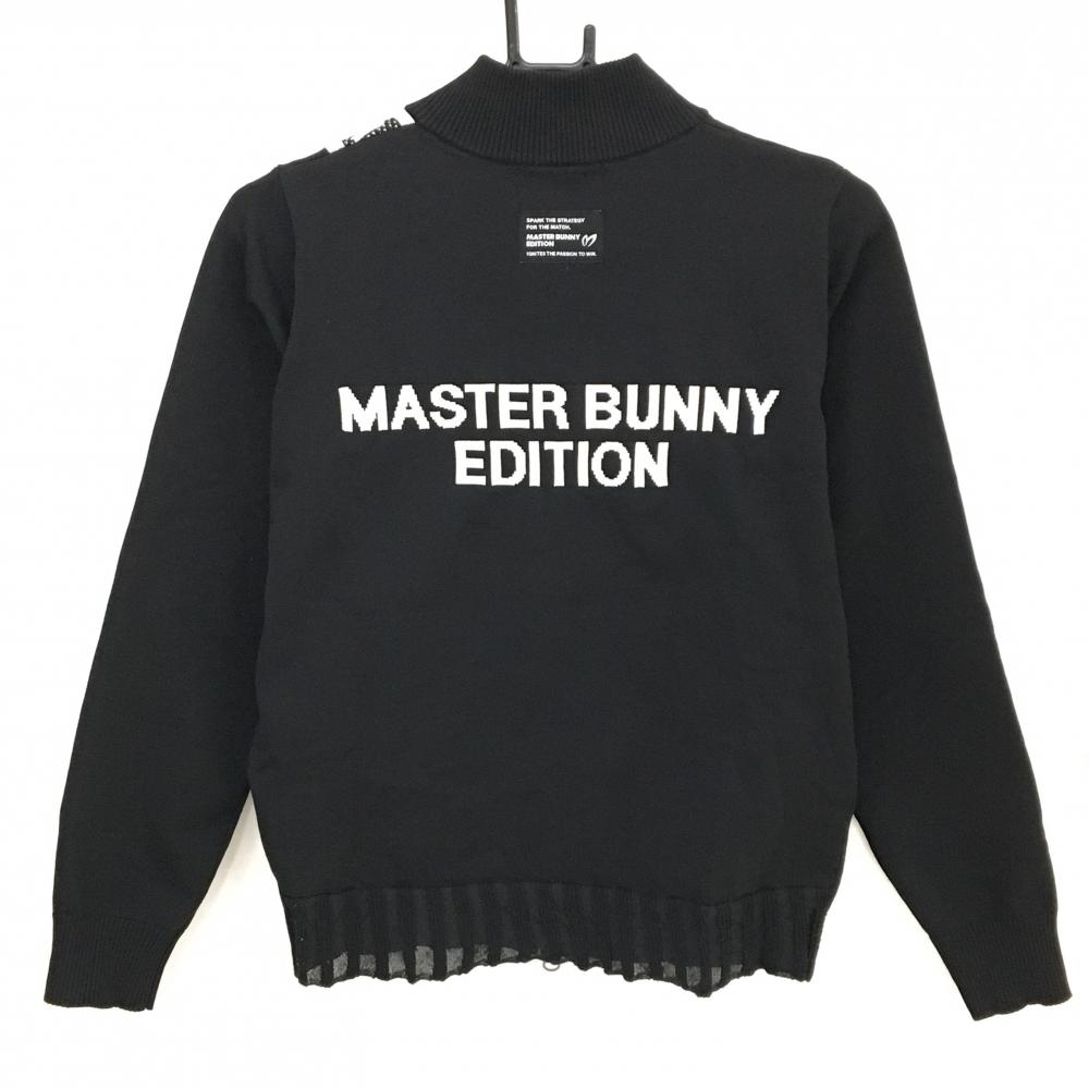 【美品】マスターバニー ニットジャケット 黒 バックロゴ 後裾異素材 レディース 0(S) ゴルフウェア 2024年モデル MASTER BUNNY EDITION