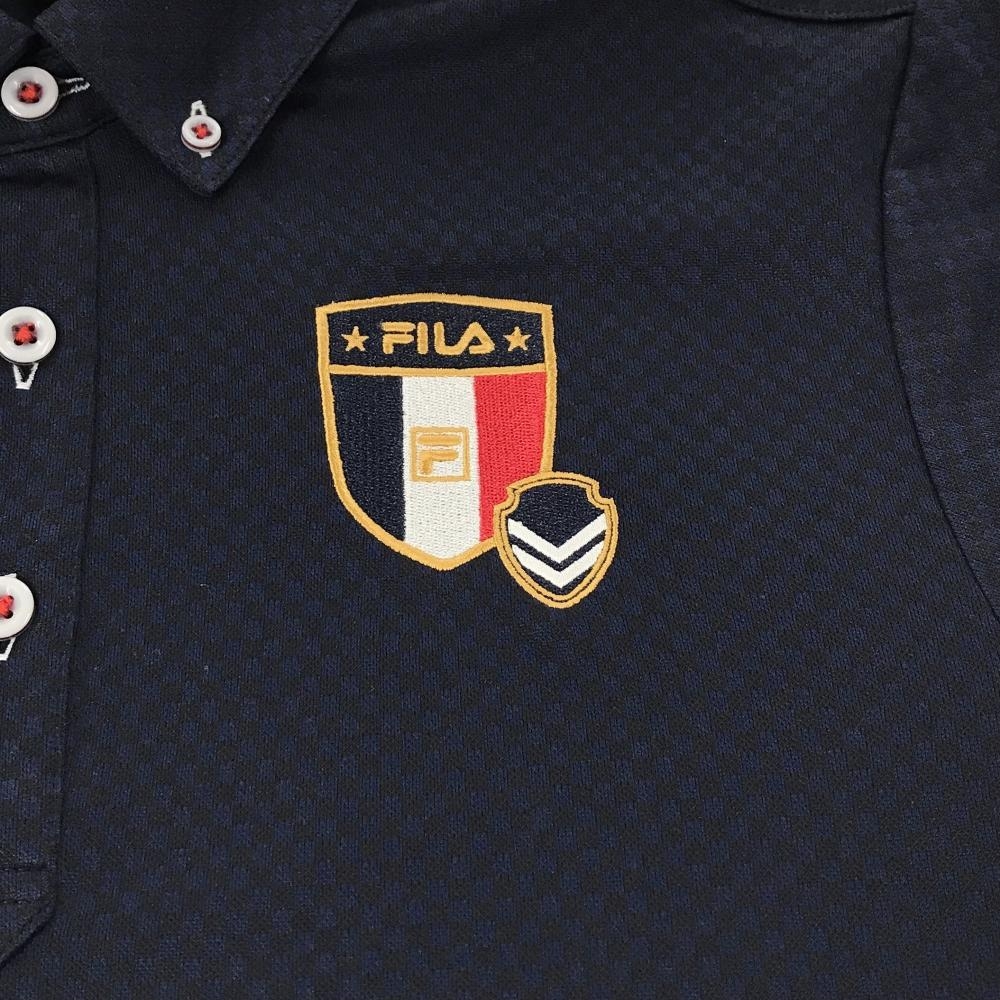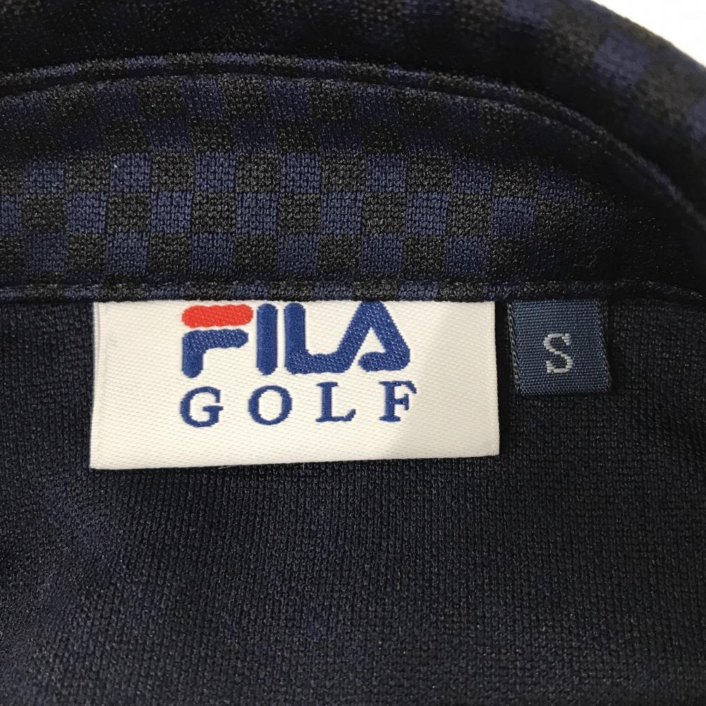 【超美品】フィラゴルフ 長袖ポロシャツ ネイビー×黒 ブロックチェック ロゴ刺しゅう メンズ S ゴルフウェア FILA GOLF