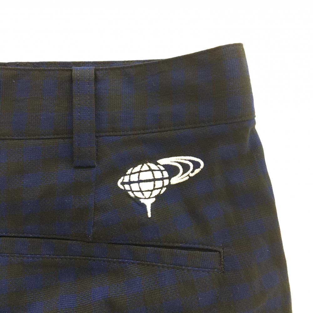【美品】ビームスゴルフ パンツ ブルー×黒 チェック ロゴ白 複数ポケット メンズ L ゴルフウェア BEAMS GOLF