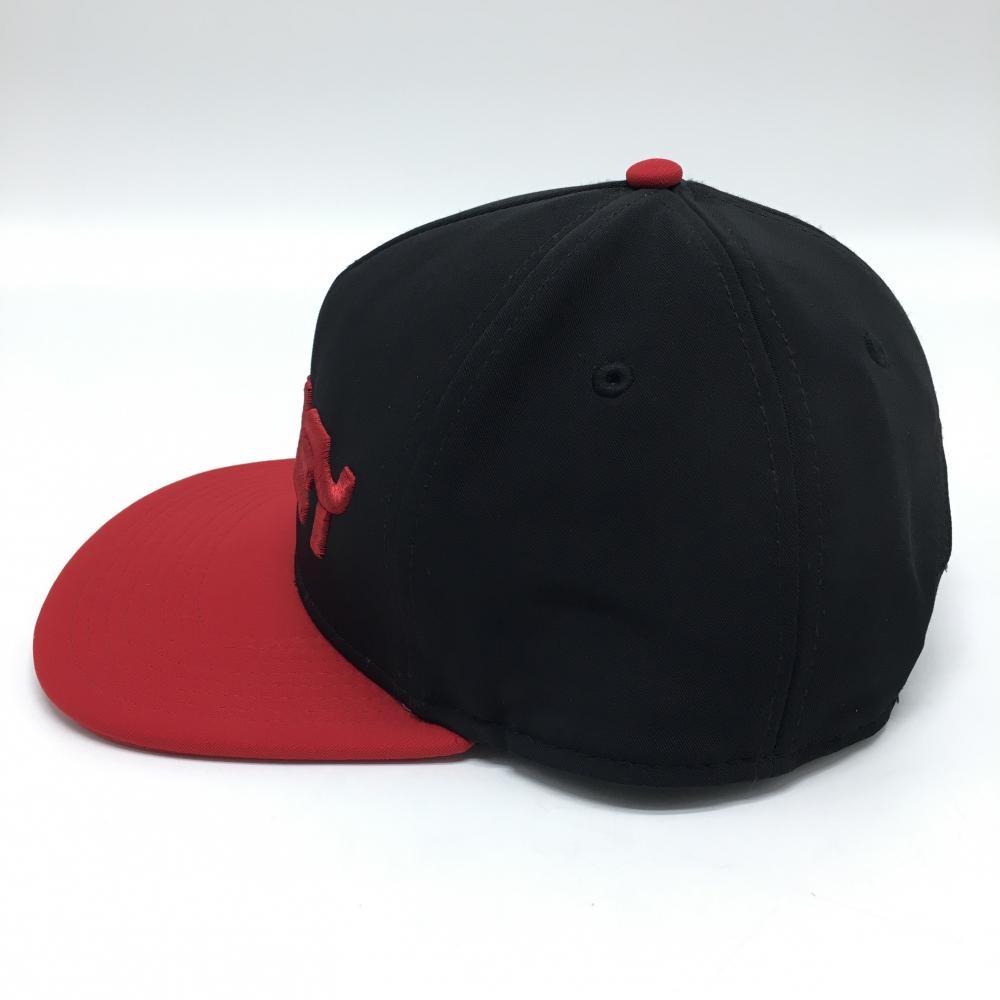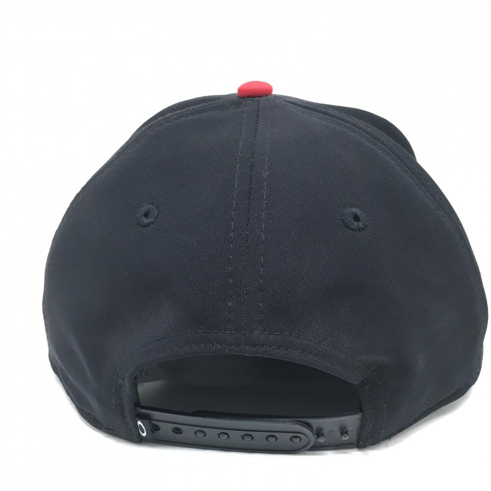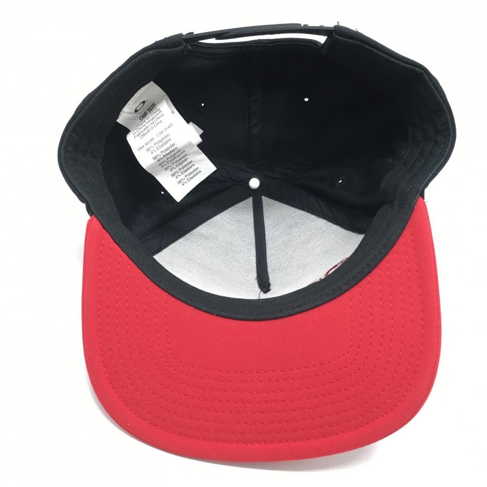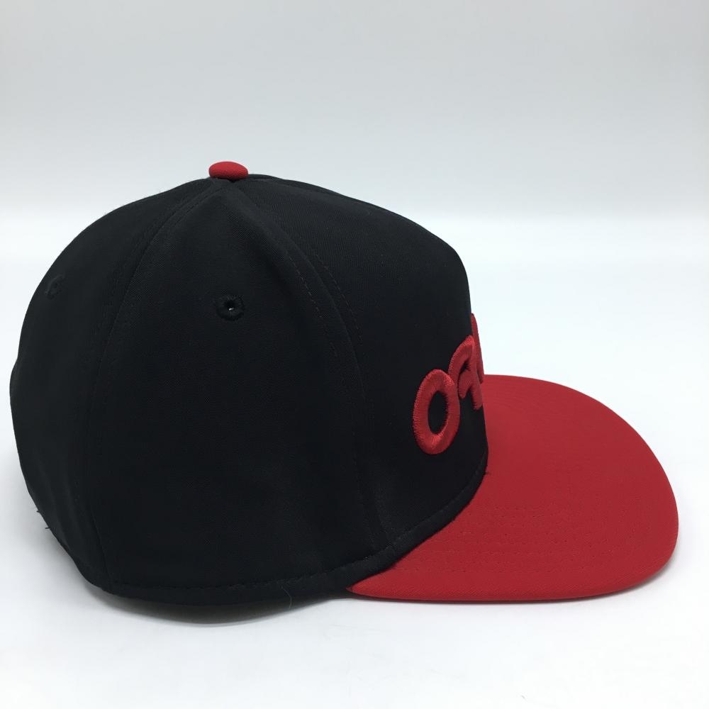 【美品】オークリー フラットキャップ 黒×レッド 立体ロゴ ゴルフウェア Oakley