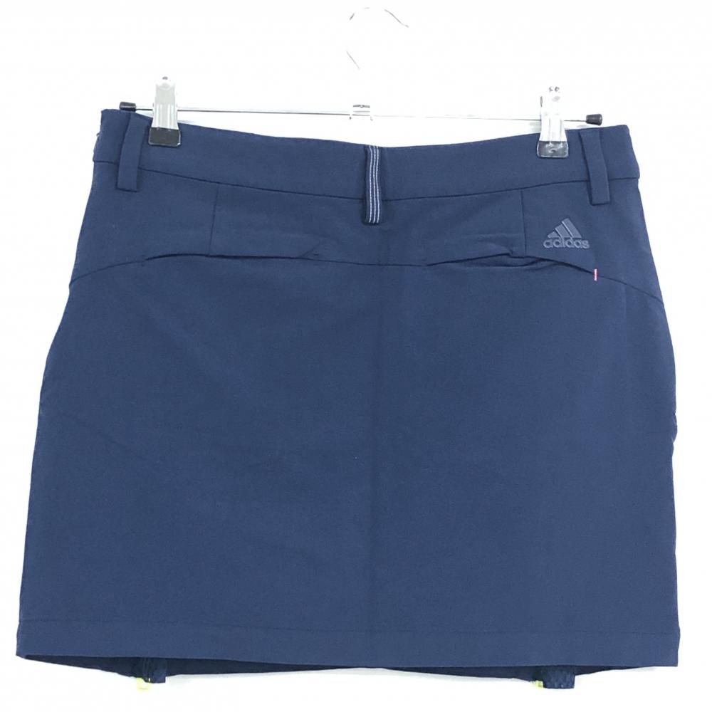 【超美品】アディダス スカート ネイビー ジップイエロー ストレッチ 一部メッシュ レディース L ゴルフウェア adidas