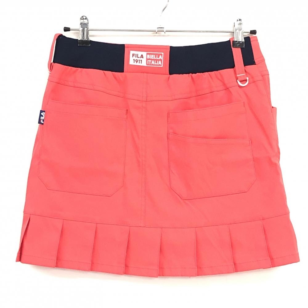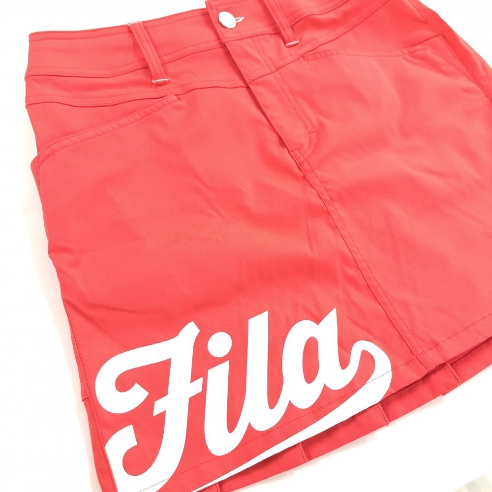 【超美品】フィラゴルフ スカート レッド ロゴ白 後ろプリーツ ウエスト一部ゴム レディース L ゴルフウェア FILA GOLF