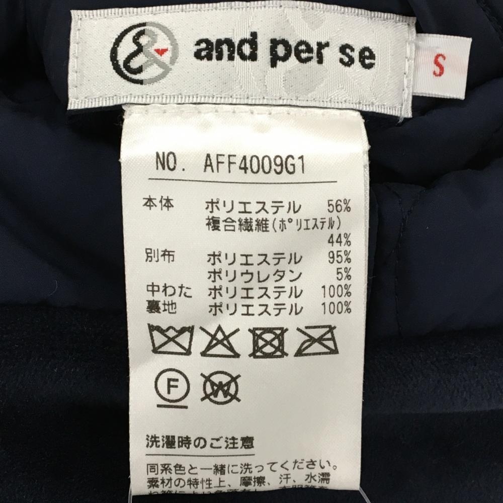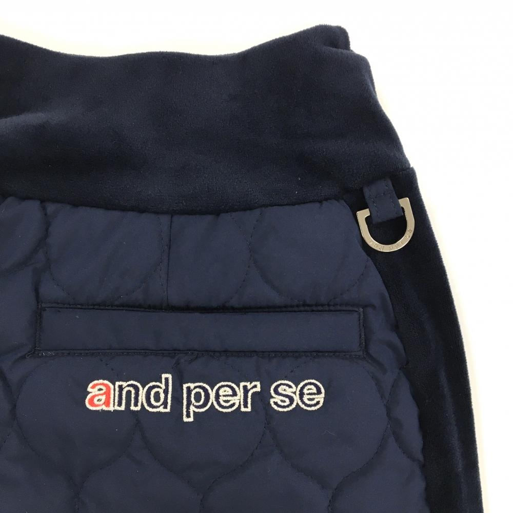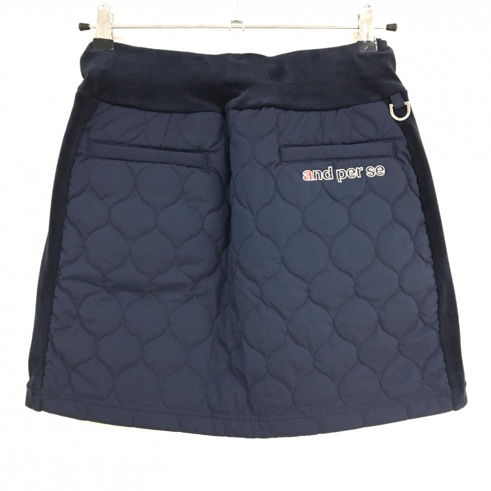 【美品】アンパスィ 中綿スカート ネイビー ウエスト・サイド微起毛 ロゴ刺しゅう レディース S ゴルフウェア and per se
