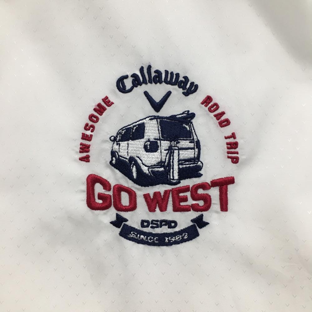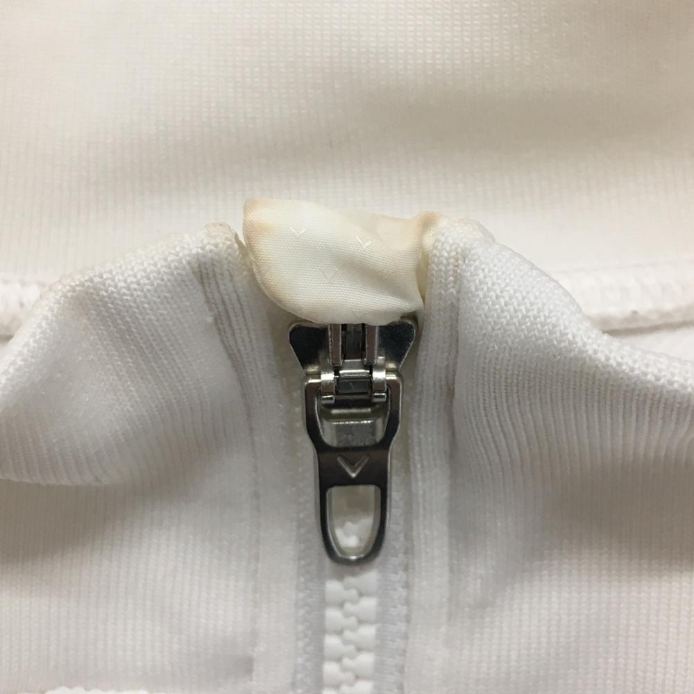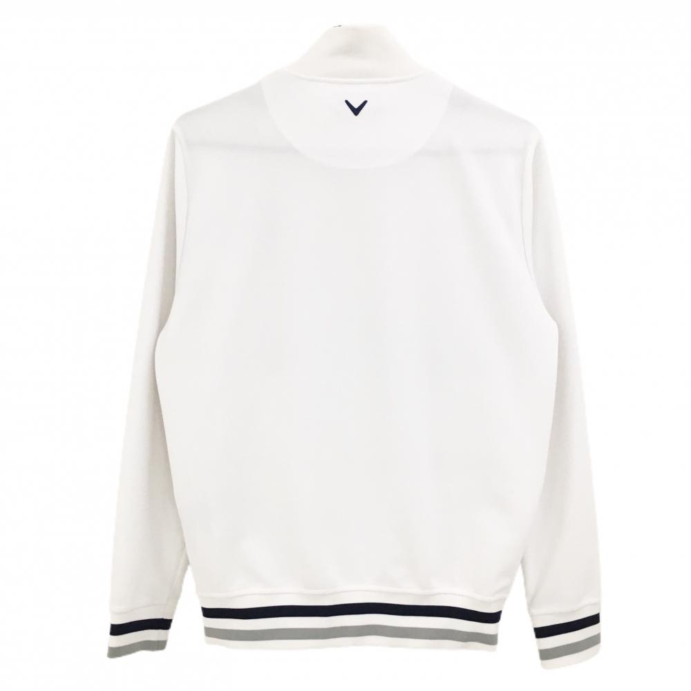 【美品】キャロウェイ ジャケットブルゾン 白×ネイビー 地模様 袖口裾ライン メンズ M ゴルフウェア Callaway