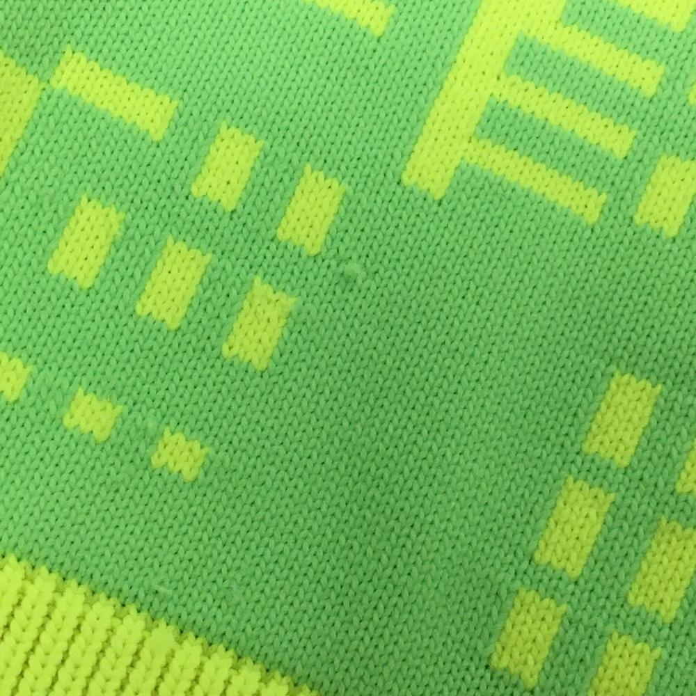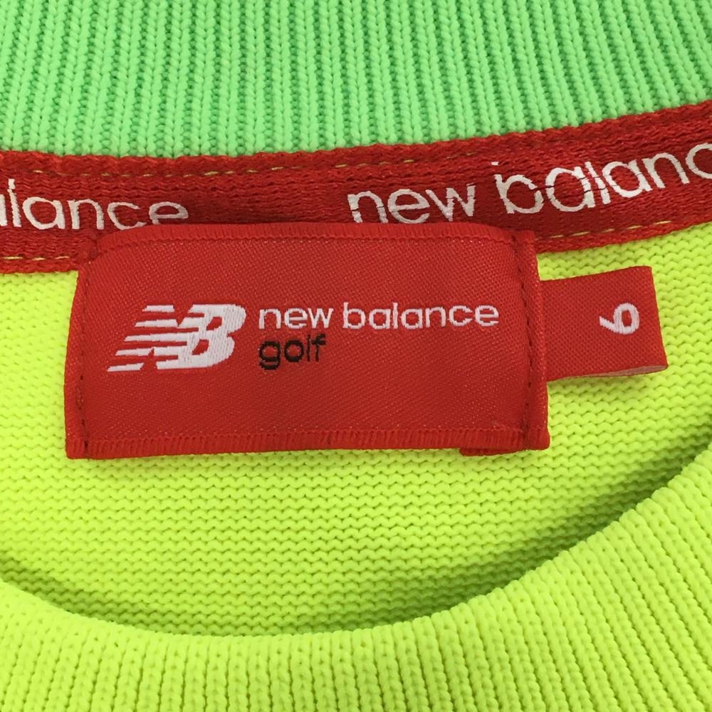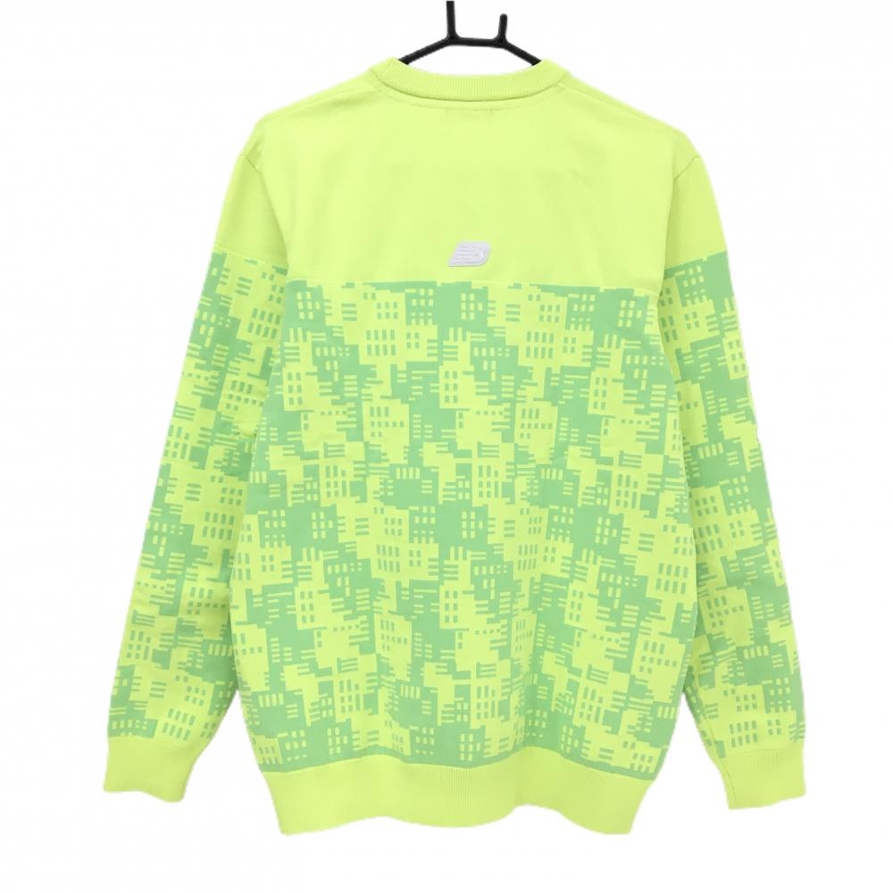 【美品】ニューバランスゴルフ セーター 蛍光イエロー系×グリーン 下部総柄 ニット メンズ 6(XL) ゴルフウェア New Balance