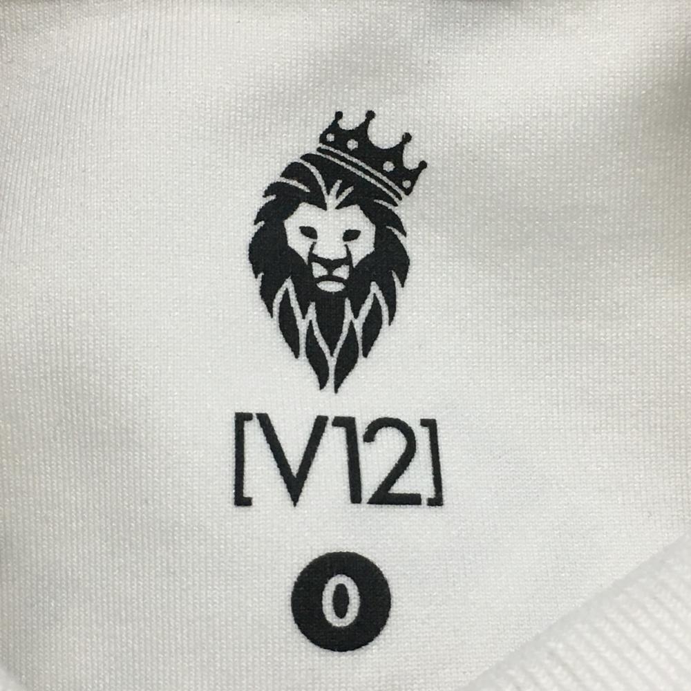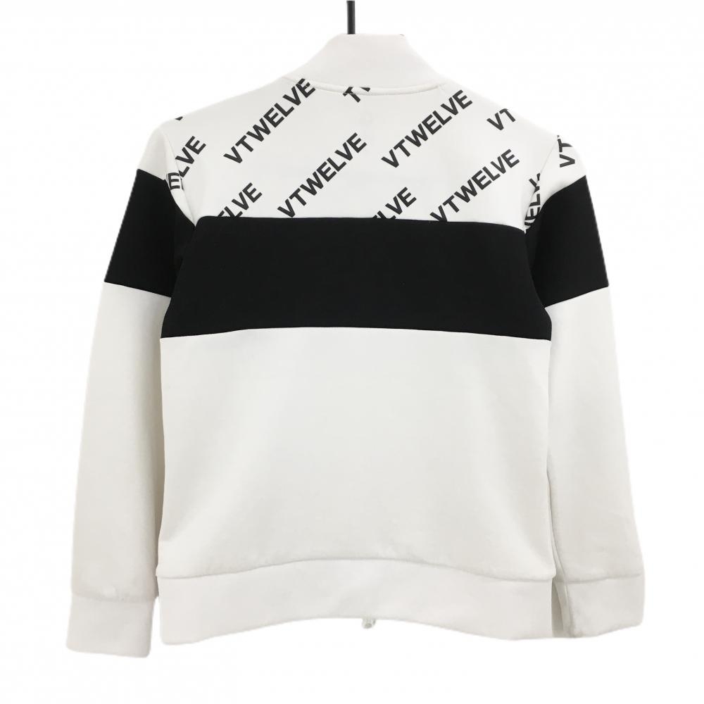 V12 ジャケットブルゾン 白×黒 上部英字ロゴ柄 ダンボールニット風 ダブルジップ レディース 0(S) ゴルフウェア V12