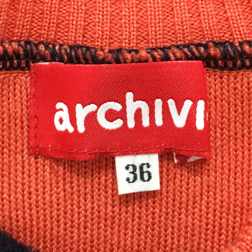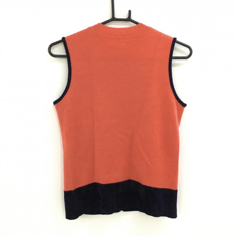 【超美品】アルチビオ ニットベスト ネイビー×白×オレンジ系 ウール混 レディース 36(S) ゴルフウェア archivio