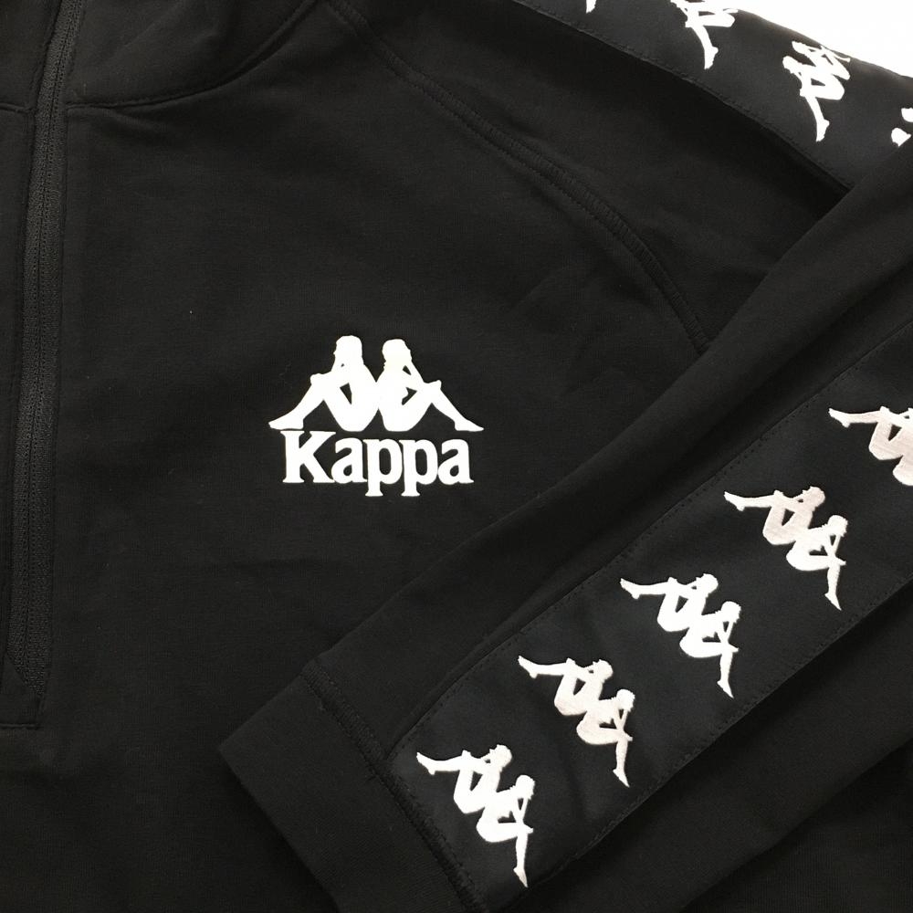 【新品】カッパ 長袖ハイネックシャツ 黒×白 肩・袖ロゴライン ハーフジップ メンズ O(XL) ゴルフウェア Kappa