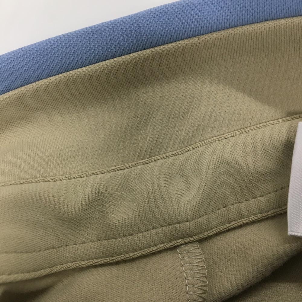 【新品】デサントゴルフ 長袖ポロシャツ ベージュ×ライトブルー 袖ロゴ 裏微起毛 スナップボタン レディース M ゴルフウェア DESCENTE