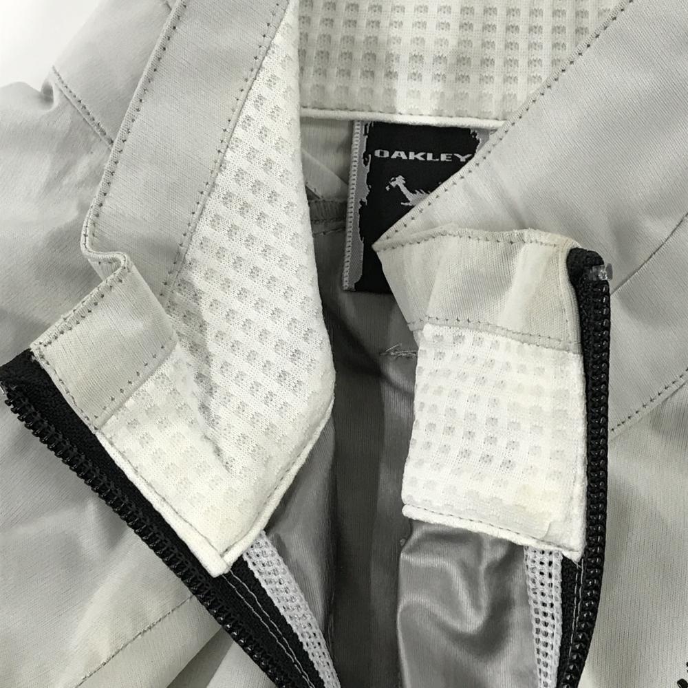 オークリー ジャケット ライトグレー ロゴ黒 裾ドローコード メンズ L ゴルフウェア Oakley