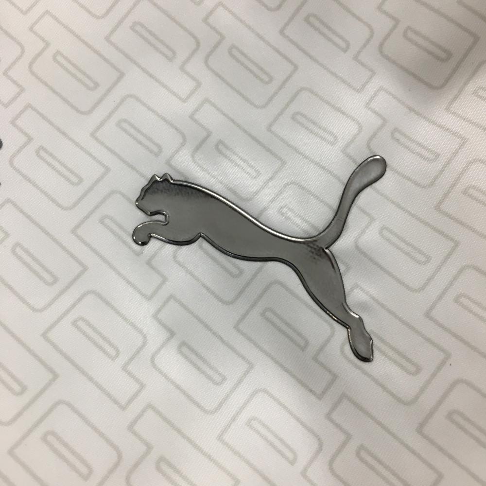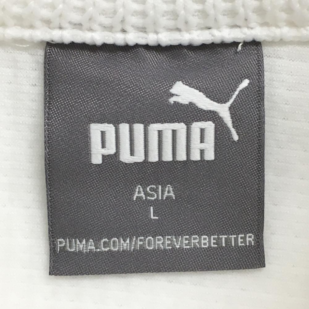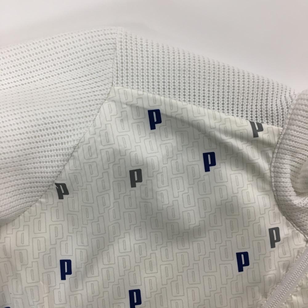 【超美品】プーマ 切替ニットジャケット 白×ライトグレー 前身頃英字柄 立体ロゴ メンズ L ゴルフウェア PUMA