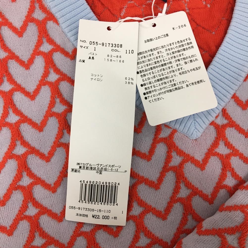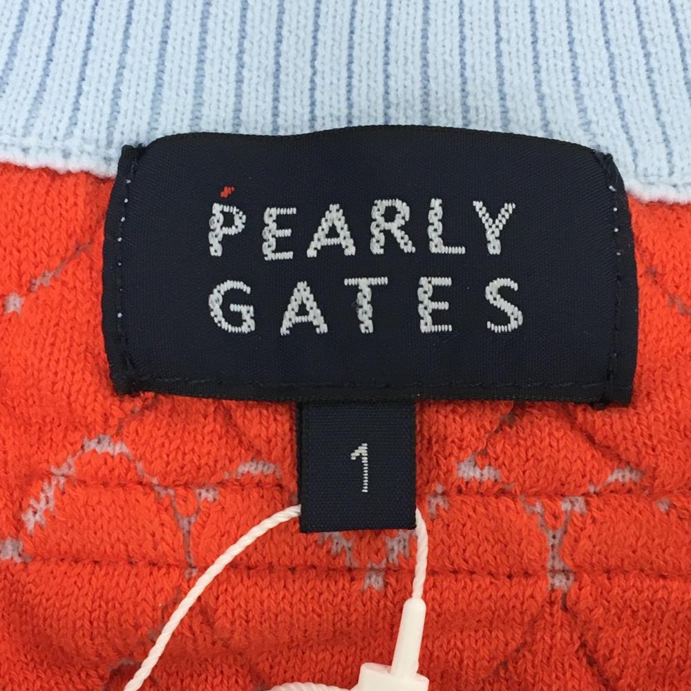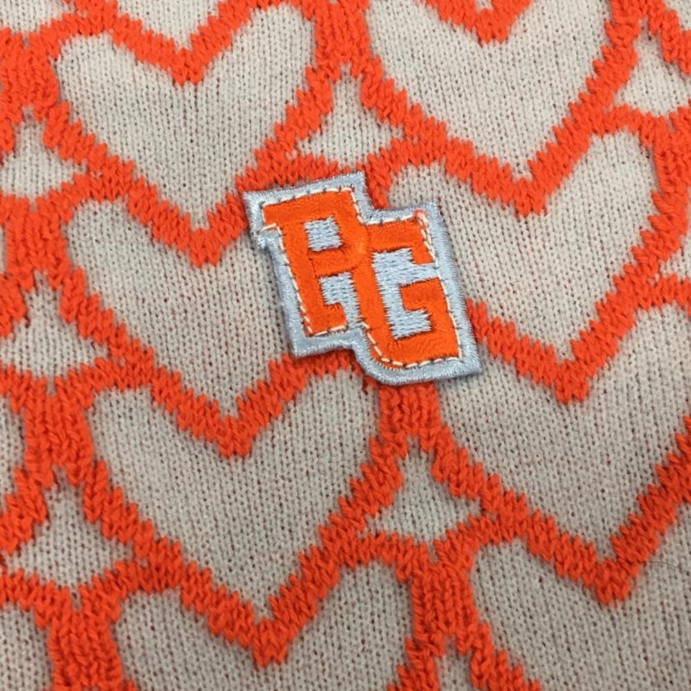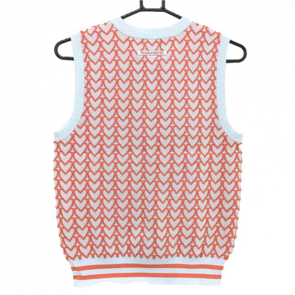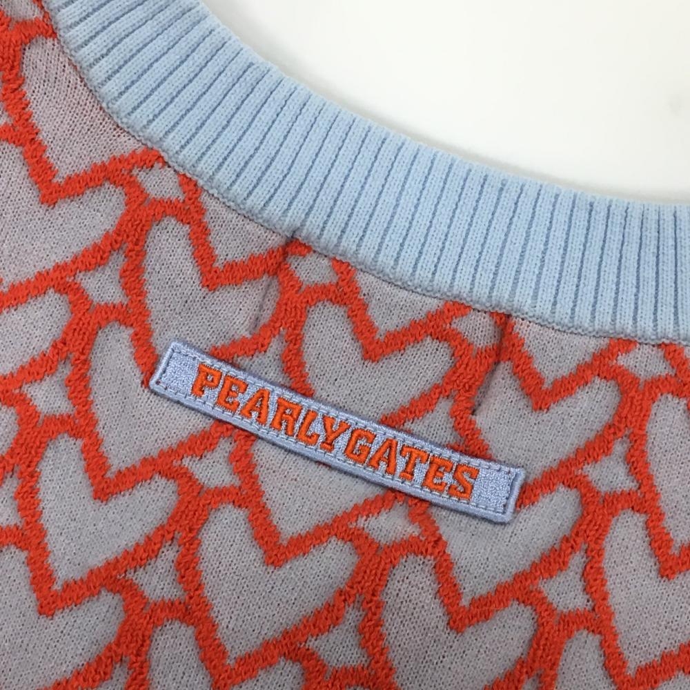 【新品】パーリーゲイツ ニットベスト ライトブルー×オレンジ ハート柄 コットン混 レディース 1(M) ゴルフウェア PEARLY GATES